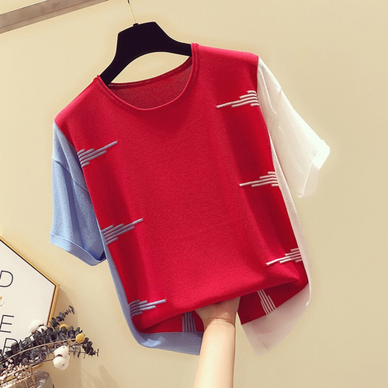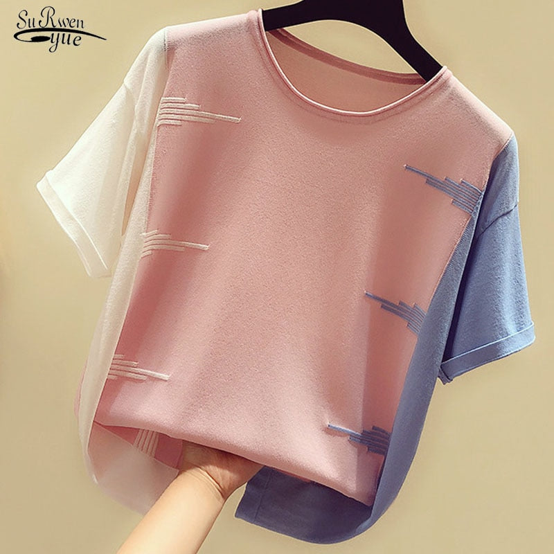 Casual Slim Women Tops Nice Short Sleeve Ladies Shirt Korean Blouse Women Blusas Mujer 2021 Summer Knitted Tee Shirt New 9761
