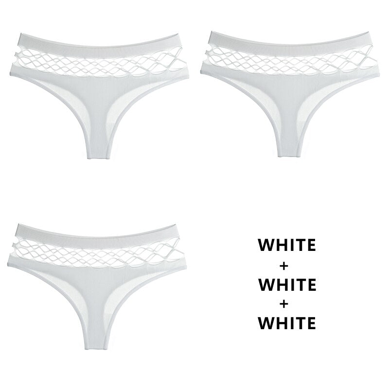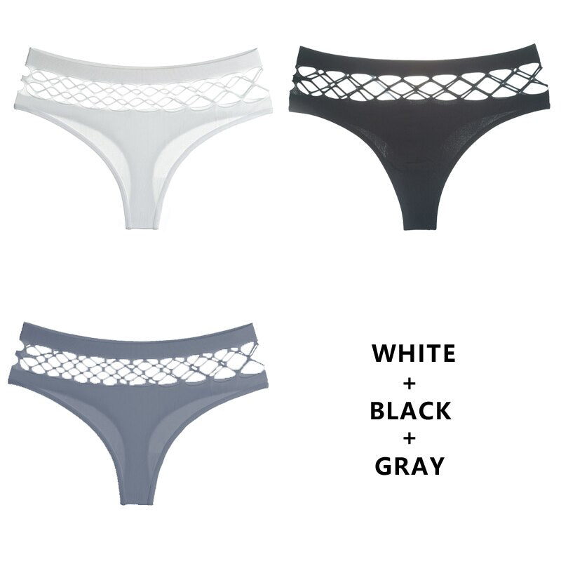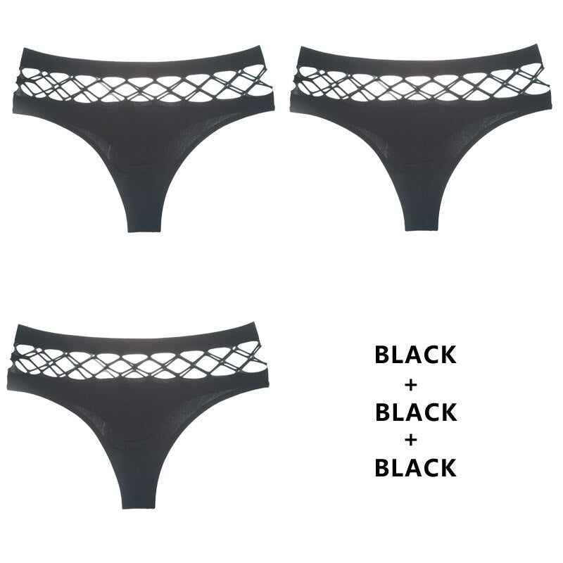 CINOON 3Pcs/Lot Hollow Out Lingerie Seamless Sexy Panties Women Elasticity Underwear Temptation Middle-waist G String Underpant