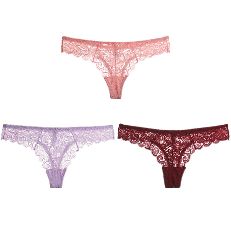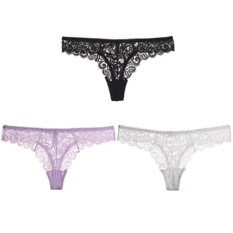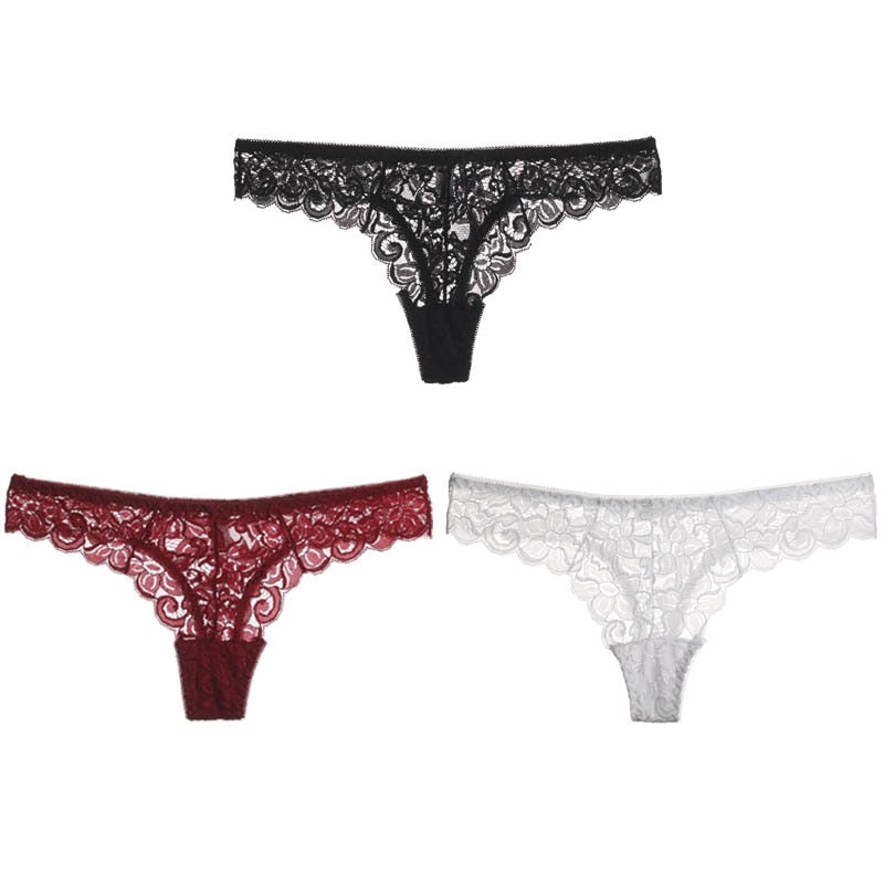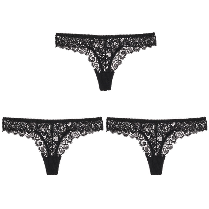 CINOON 3PCS/Set Sexy Panties Women Low-waist Briefs Female Lace Embroidery Underwear Transparent G String Underpant Lingerie