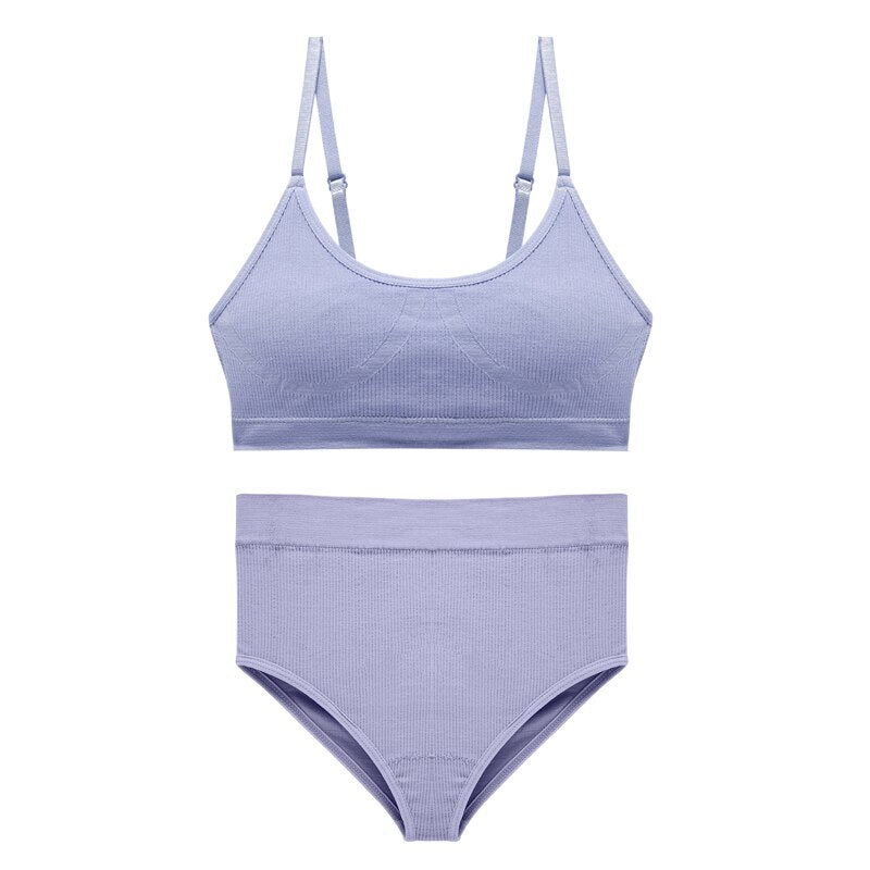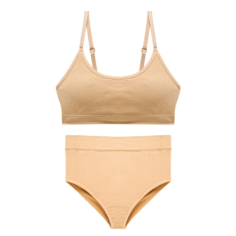 CINOON Seamless Tanks Tops Bras Set Female Underwear Wireless Bra Crop Top Women High Waist Underpants Soft Bralette Lingerie
