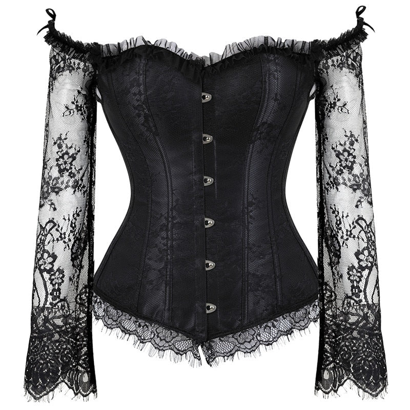Corset Top Bustier Lingerie Women with Long Sleeves Renaissance Plus Size Lace Floral Sexy Costumes Burlesque Red Black White