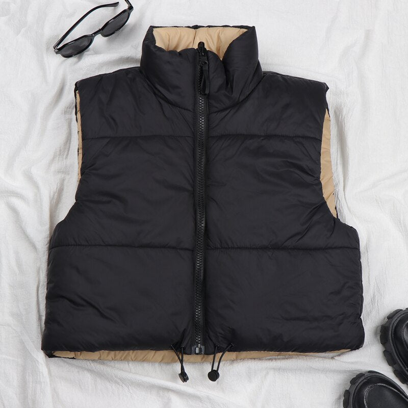Cropped Vests For Women Winter Coat Warm Vest Down Jacket Female Sleeveless Parkas Short Waistcoat Ladies Down Coat Gilet Femme