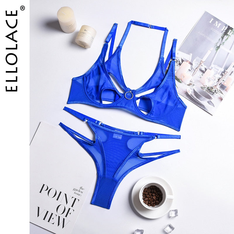 Ellolace Hollow Out Women's Underwear Transparent Exotic Costumes Sexy Push Up Bra Lace Porn Intimate Sissy Mesh Breves Sets