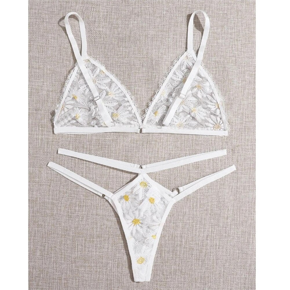 Erotic Women Embroidery Lace Sexy Lingerie Bowknot Strapless Bra Thong Set Sleepwear Pajamas Lingerie Seamless Panties lenceria