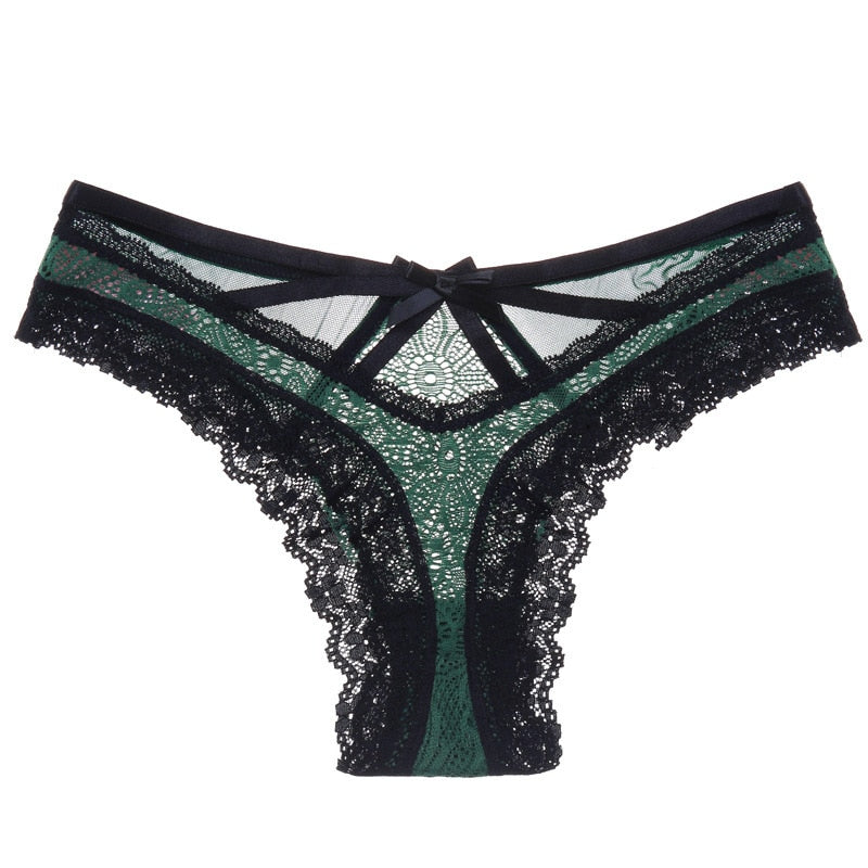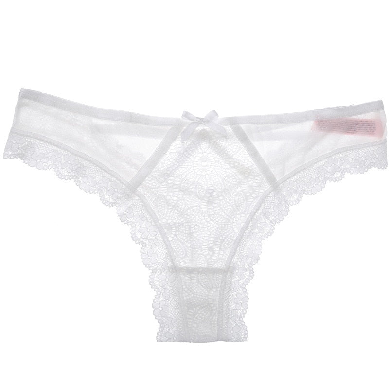 European Luxury Lace Sexy Women Underwear Transparent Bow Hollow Out Panties Sex Thong Low Waist Seamless Briefs Tanga