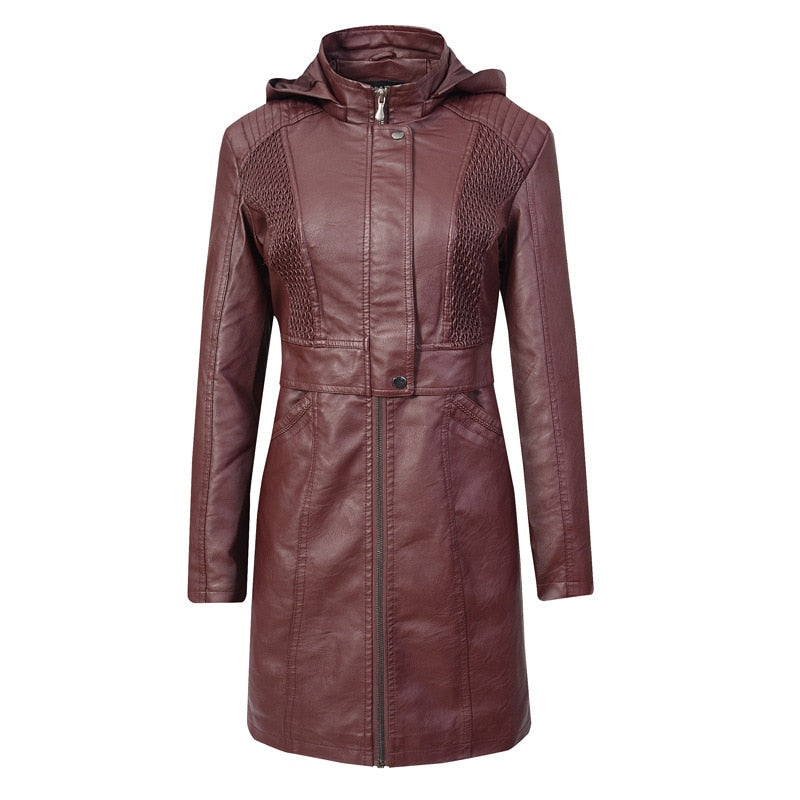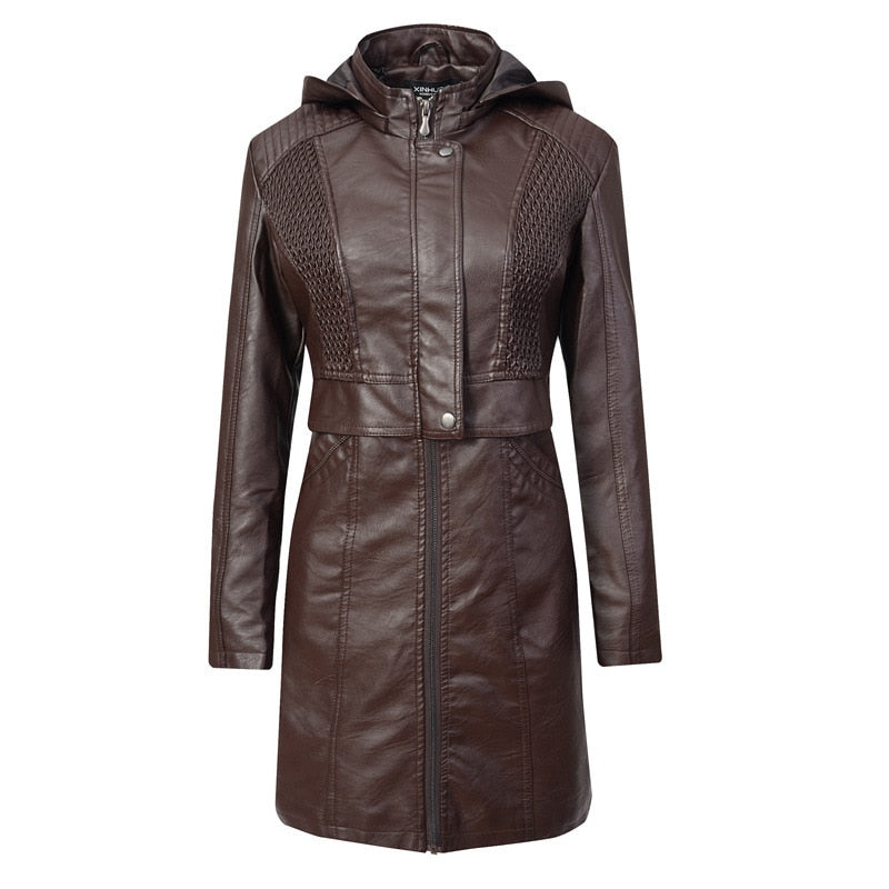 Fashion Leather Coats Women's Spring Autumn Clothing Long Section Slim PU Leather Jacket Brown Black Coffee Leather Jacket Women