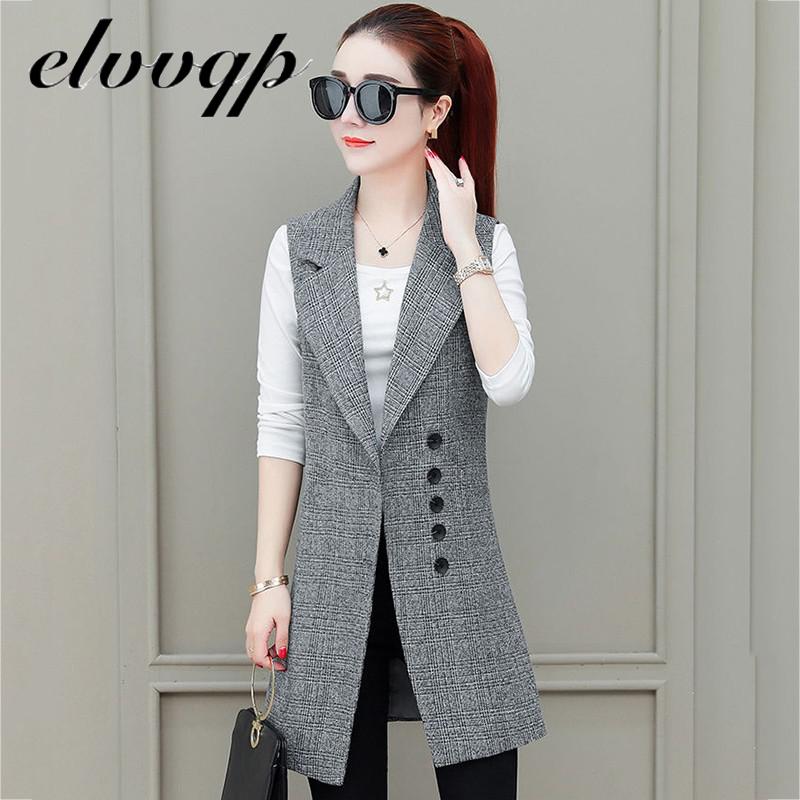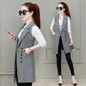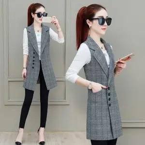 Fashion Long Plaid Vest Women's Sleeveless Blazer Spring Autumn Plus Size Women Elegant office work Suit Vest Female Waistcoat