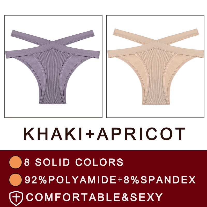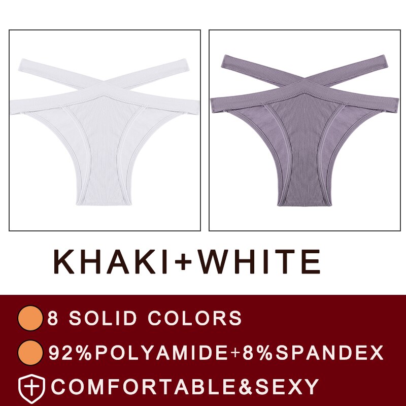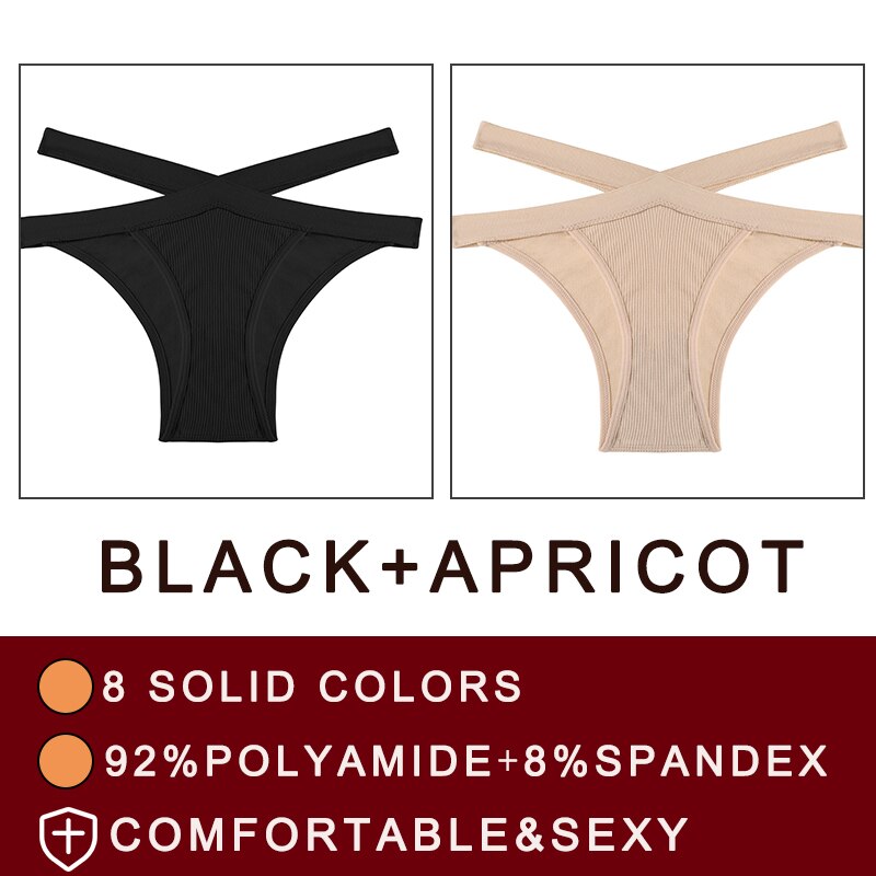 FINETOO 2PCS/Set Fashion Women's Seamless Sexy Panties Lingerie Girls Cross Strap Underwear Briefs 8 Solid Colors Woman Pantys