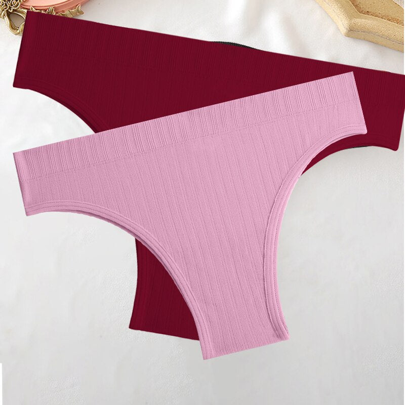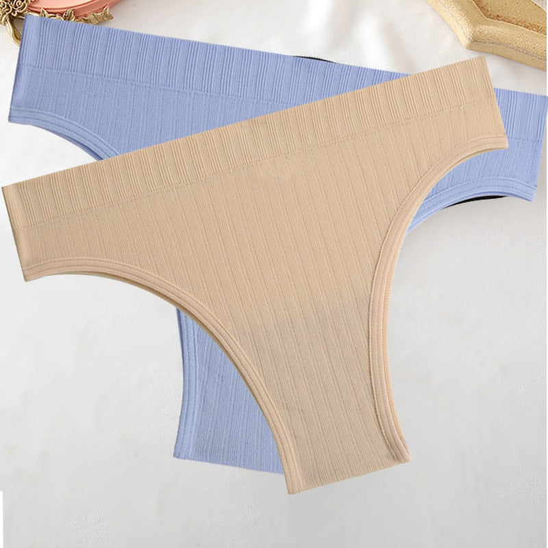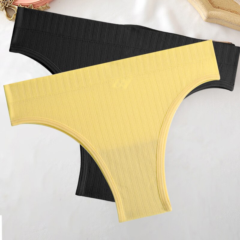 FINETOO 2PCS/Set M-XL Women Seamless Pantys 9 Solid Colors Sexy Brazilian Panties  Midi-Waist Underpants For Girls Fashion Thong
