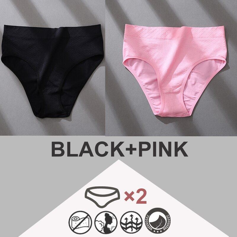 FINETOO 2PCS/Set Women Panties Bodyshaper M-2XL Women's Underwear Lingerie 8 Solid Colors Sexy Female Undepant High Waist Briefs