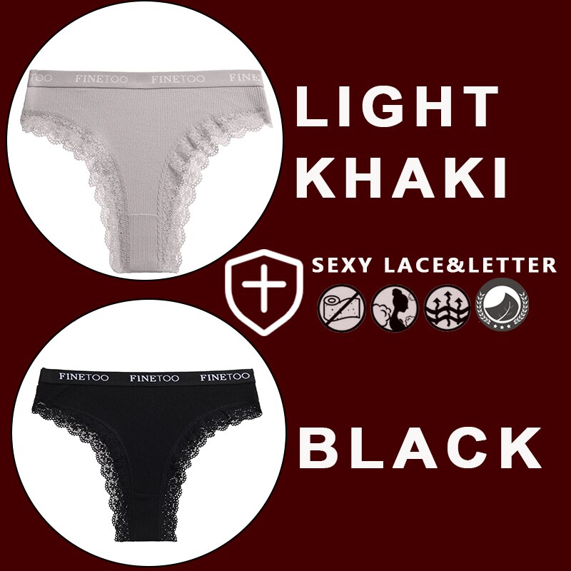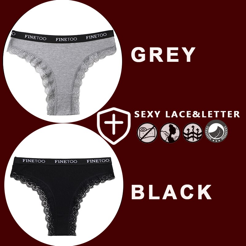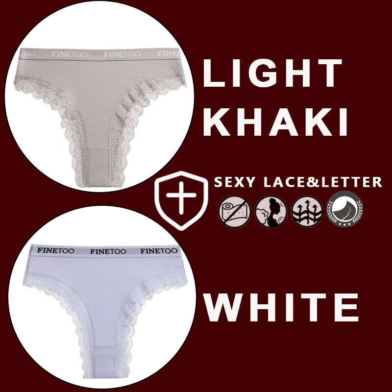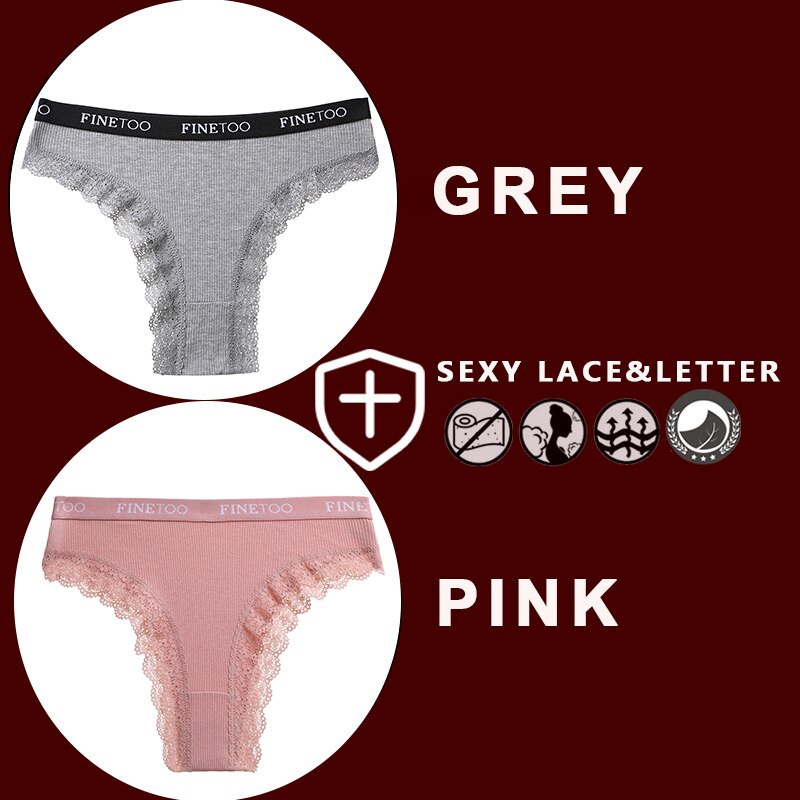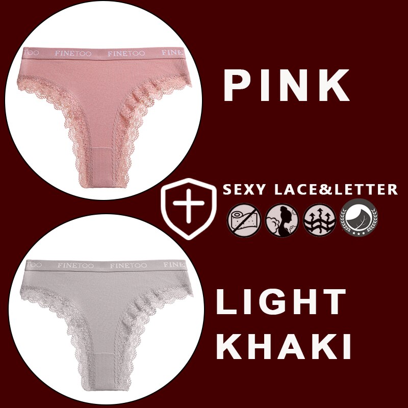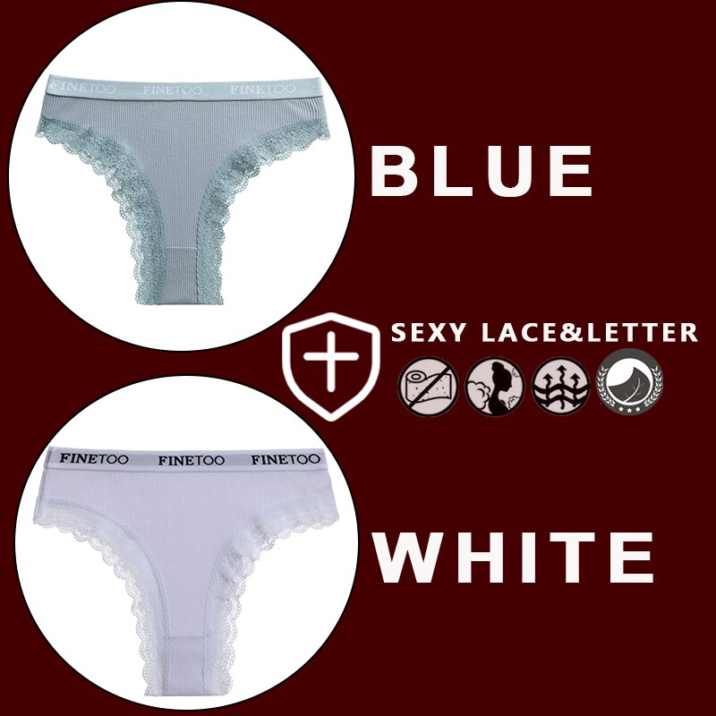 FINETOO 2PCS/Set Women's Cotton Panties Girls Letter Thongs Brazilian Pantys Sexy Lace Underwear For Woman Lingerie Bikini Panty