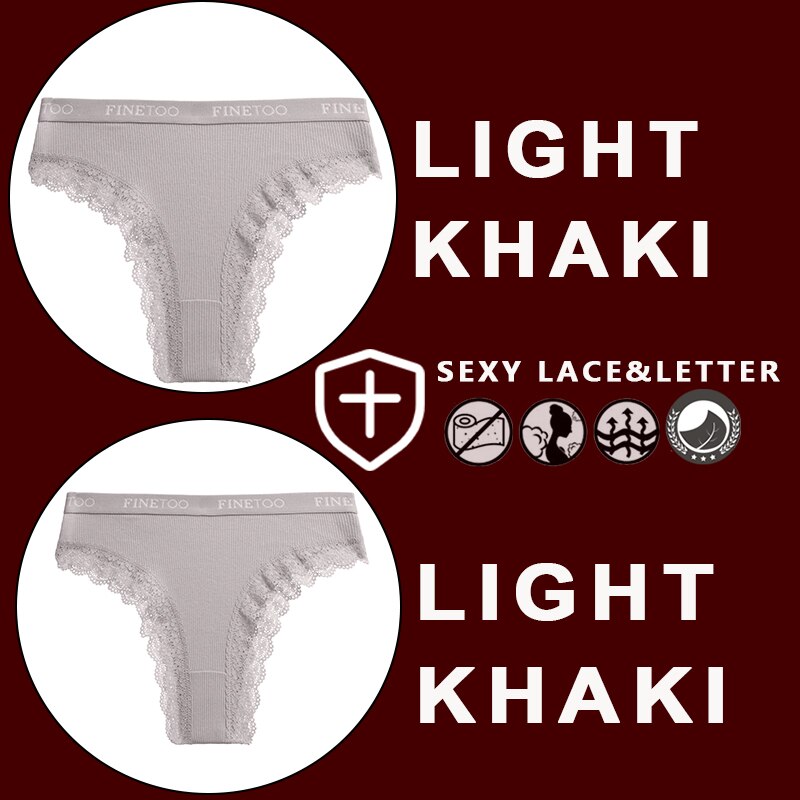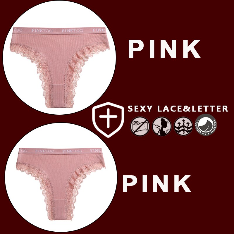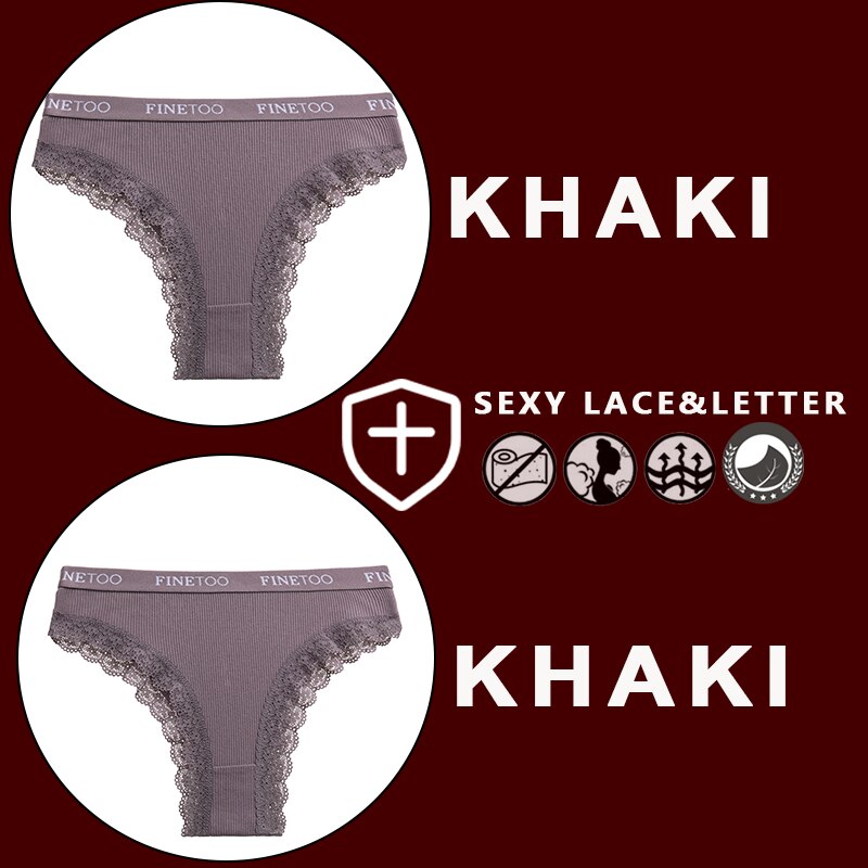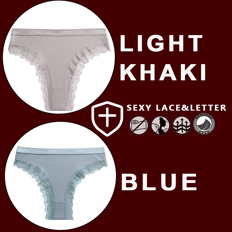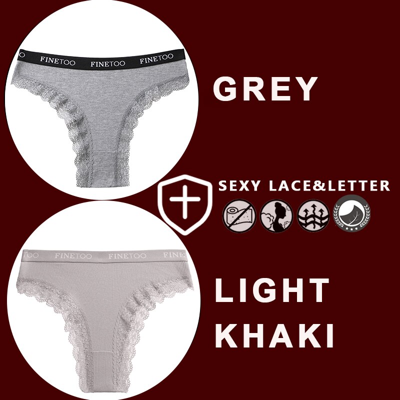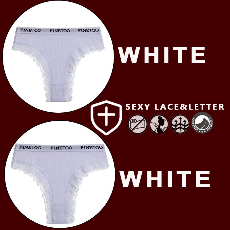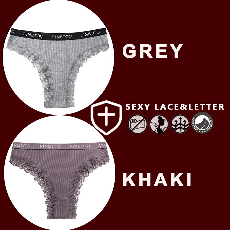 FINETOO 2PCS/Set Women's Cotton Panties Girls Letter Thongs Brazilian Pantys Sexy Lace Underwear For Woman Lingerie Bikini Panty