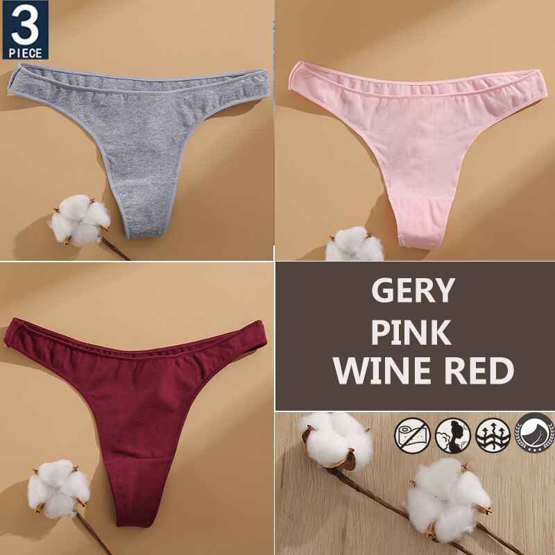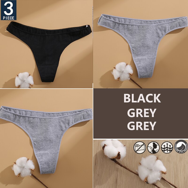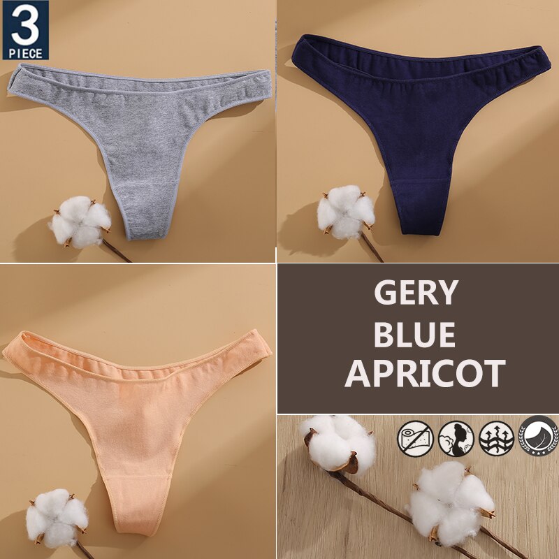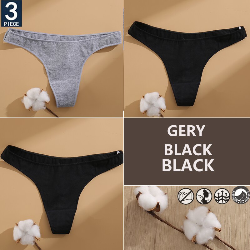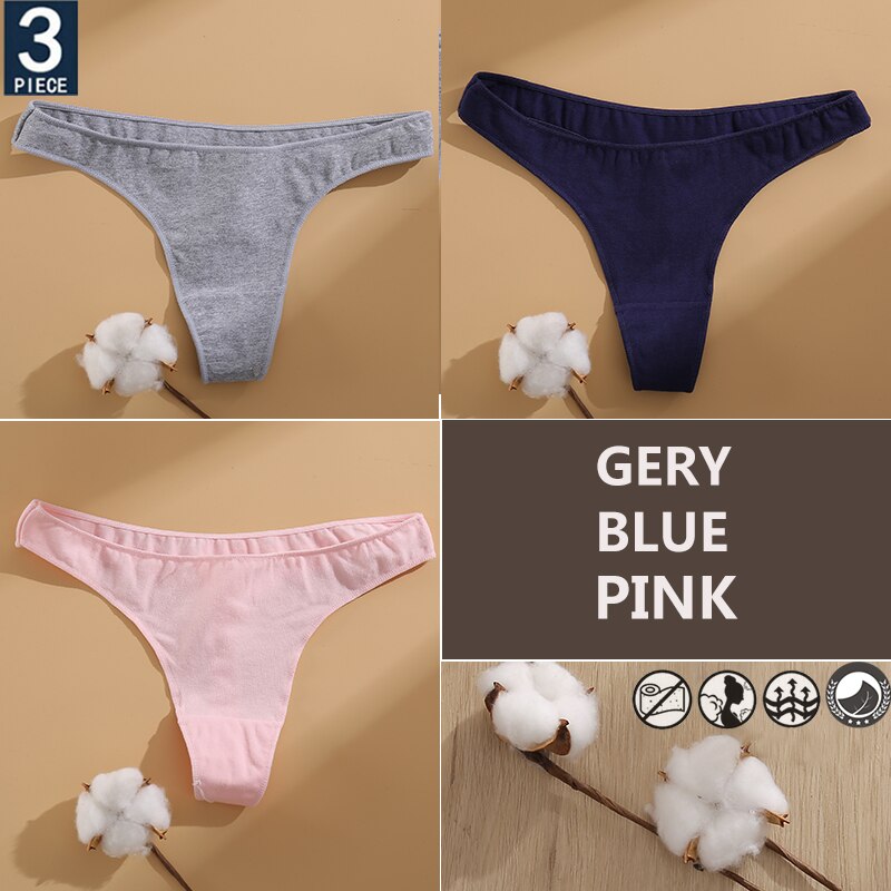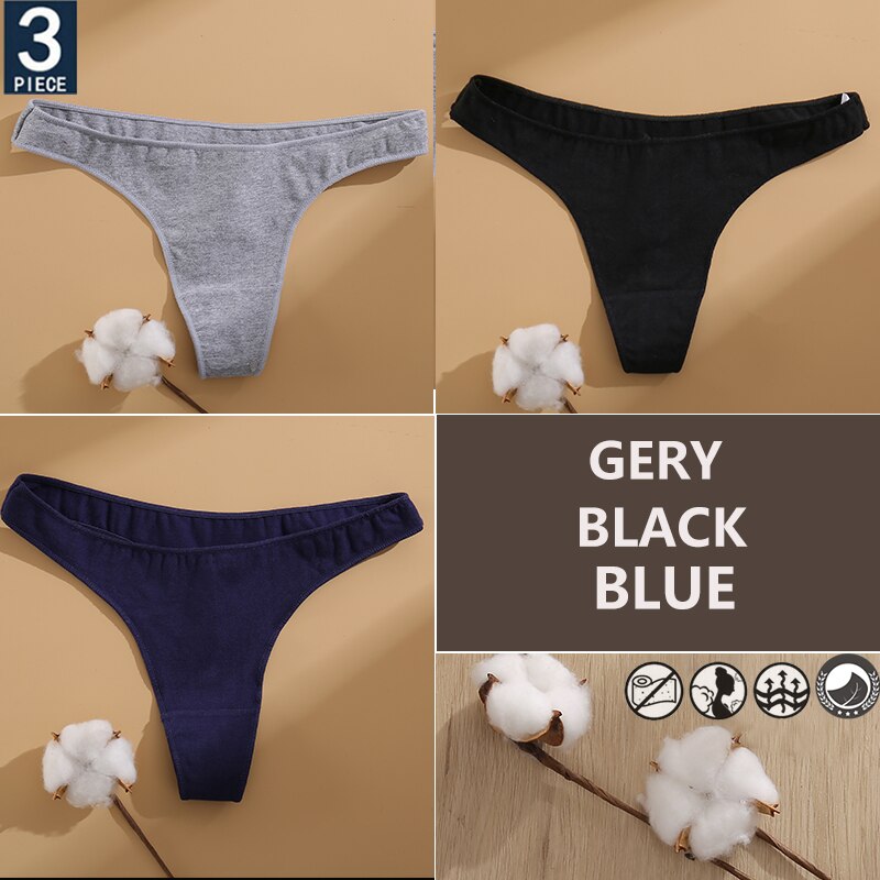 FINETOO 3PCS/Set Cotton Lingerie Women's G-string Underwear 7 Solid Colors Ladies Panties Female Low-Rise Woman's Thong Briefs