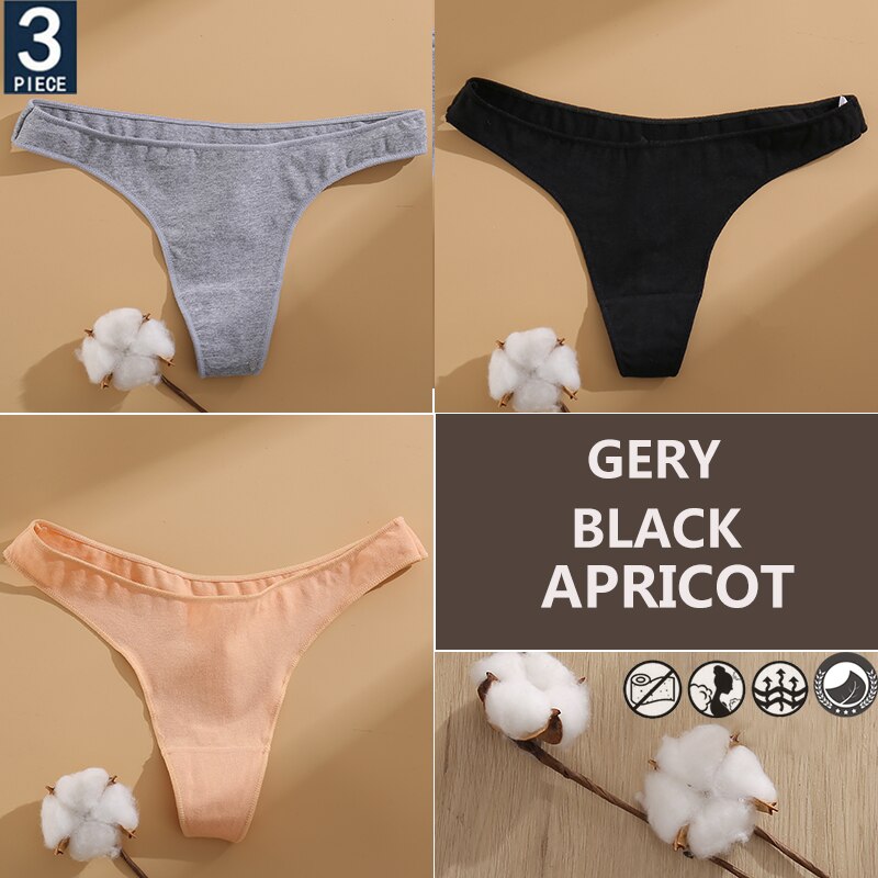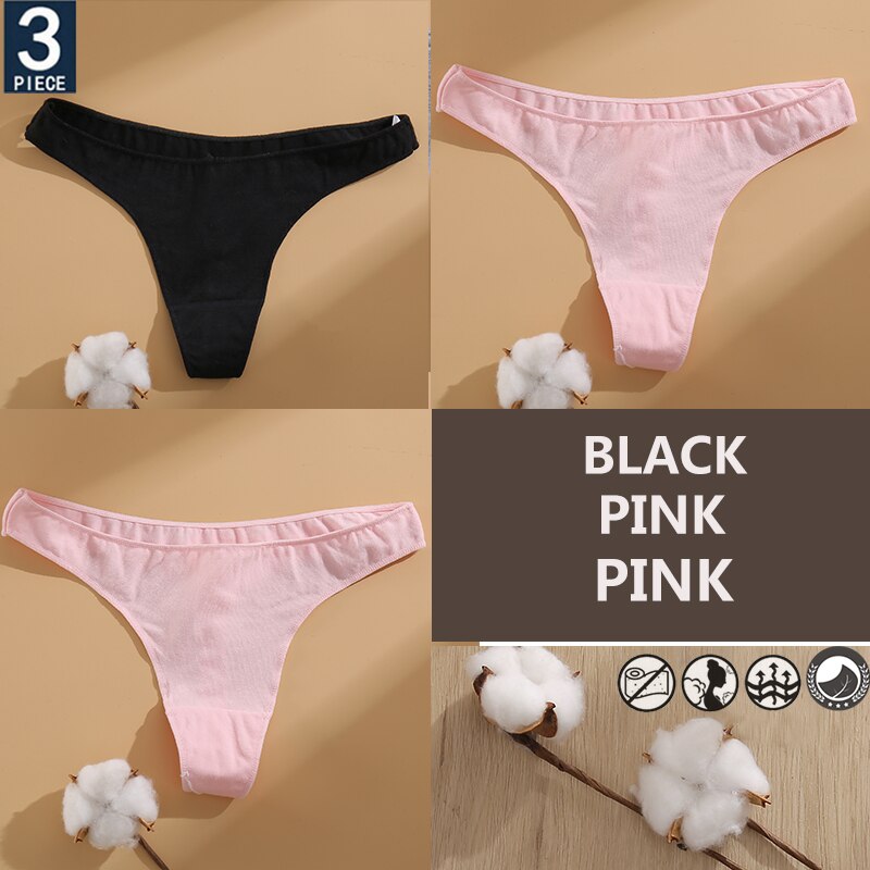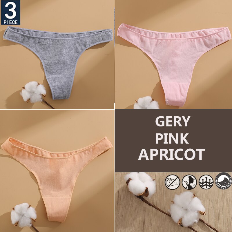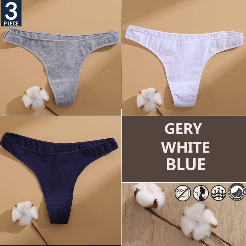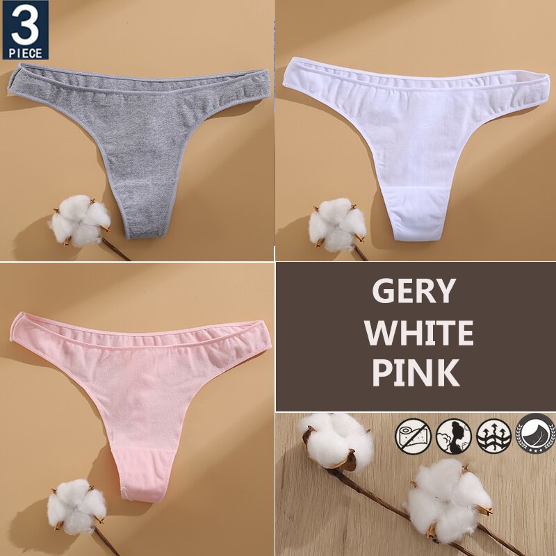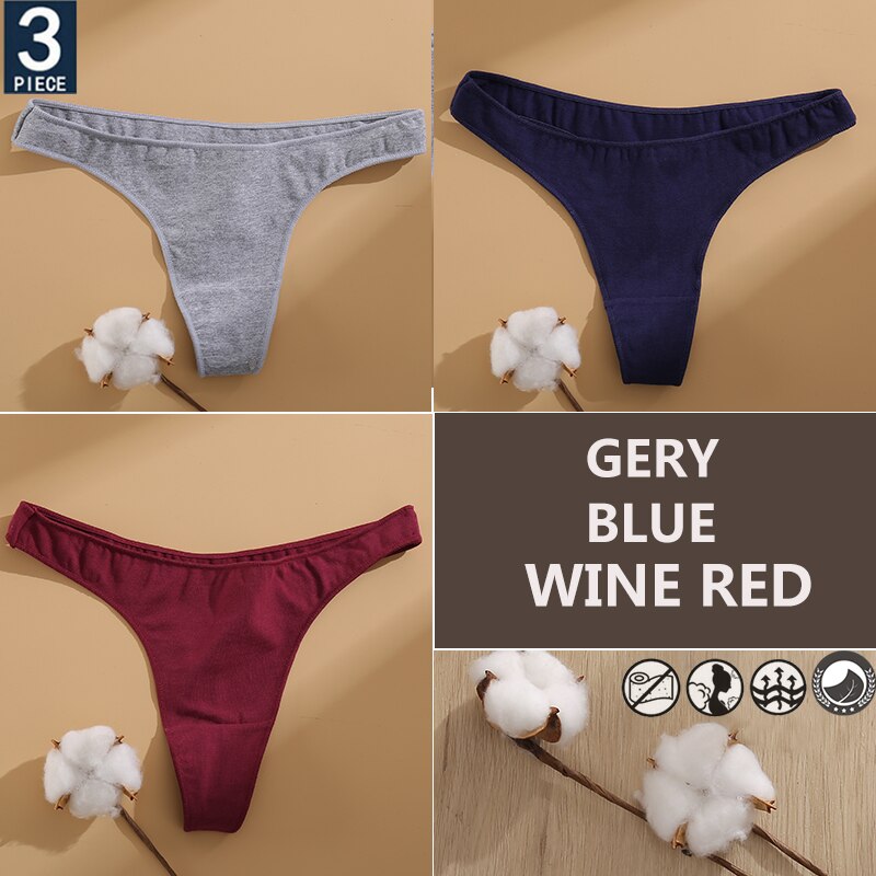 FINETOO 3PCS/Set Cotton Lingerie Women's G-string Underwear 7 Solid Colors Ladies Panties Female Low-Rise Woman's Thong Briefs