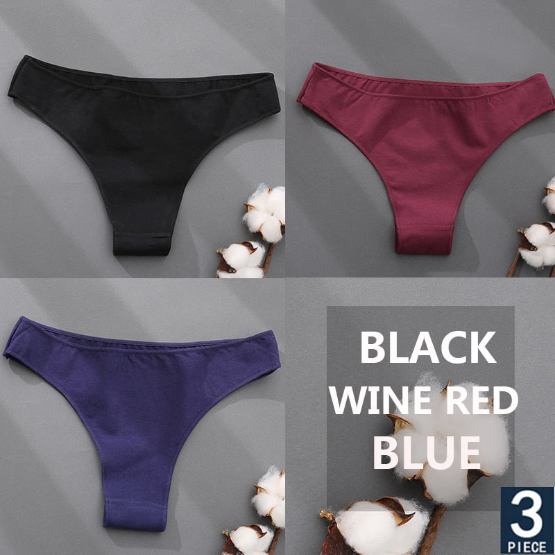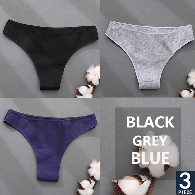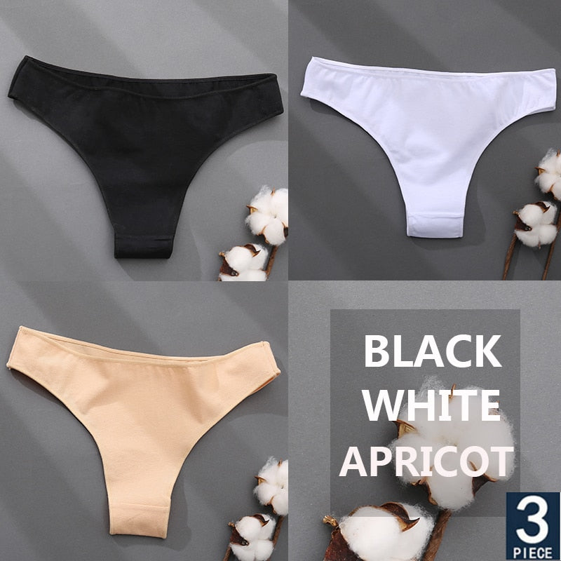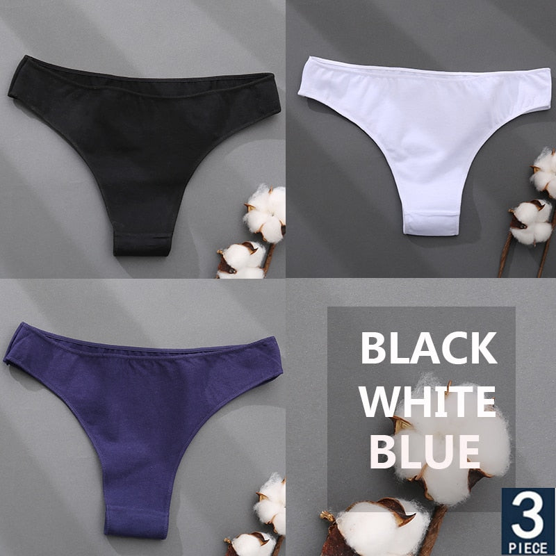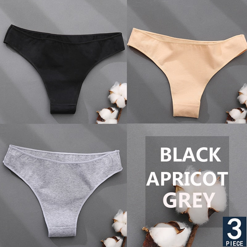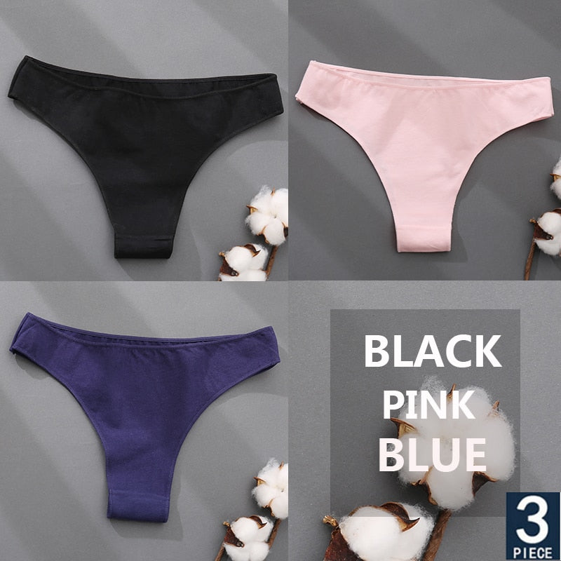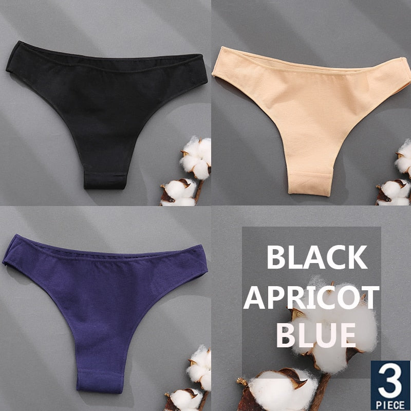 FINETOO 3PCS/Set Cotton Thong Women's Underwear M-XXL Woman Bikini Underpants Femme 7 Colors Breathable Girls Lingerie Panties
