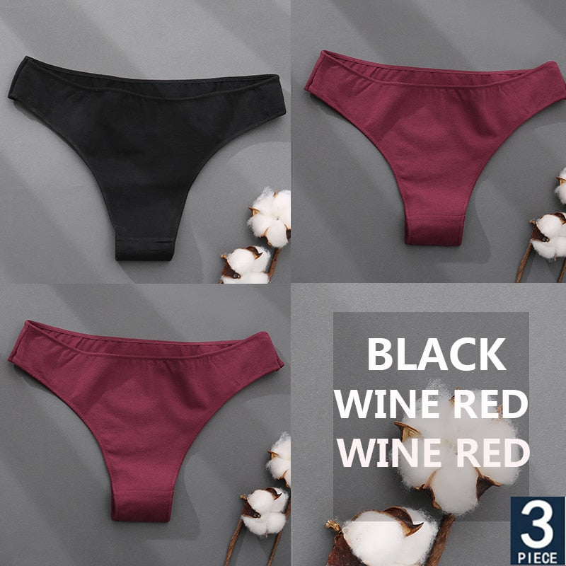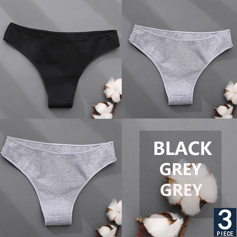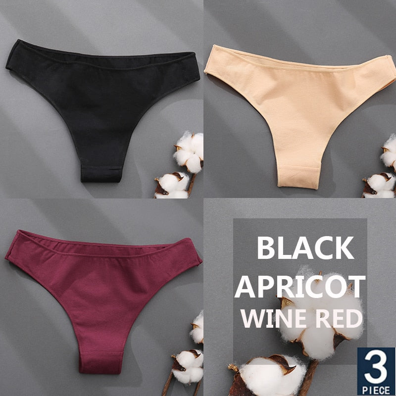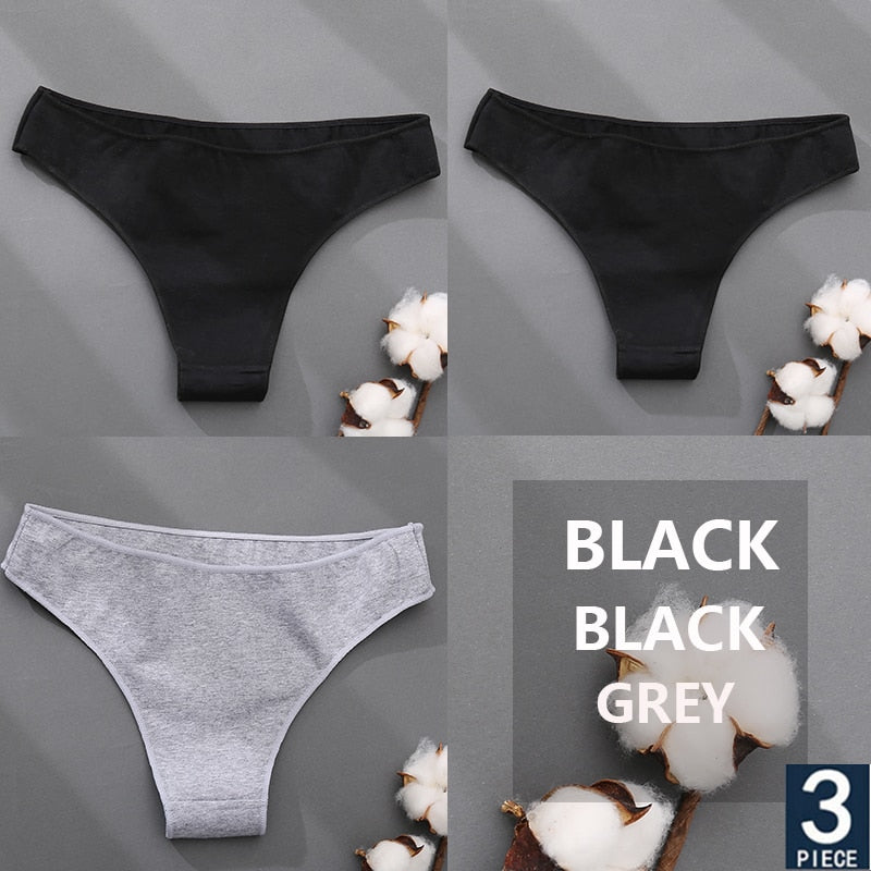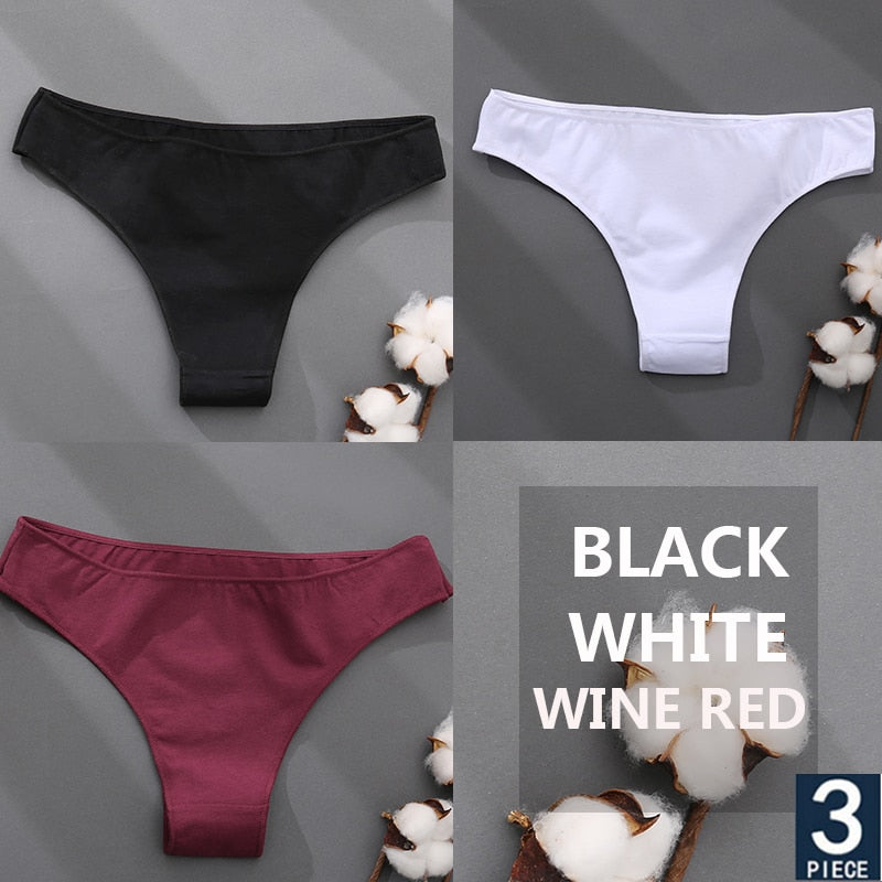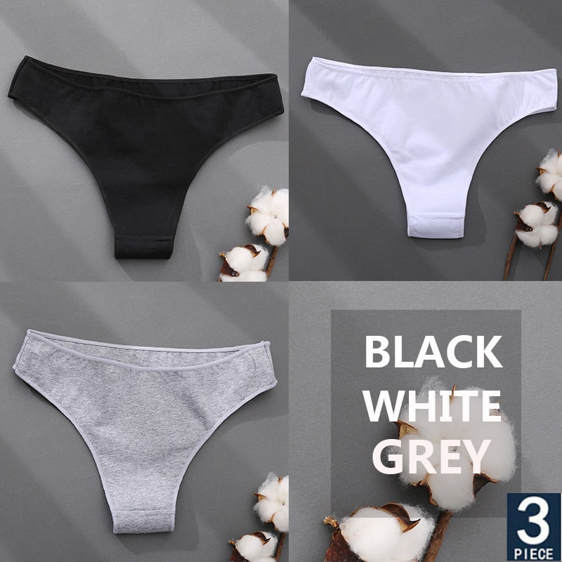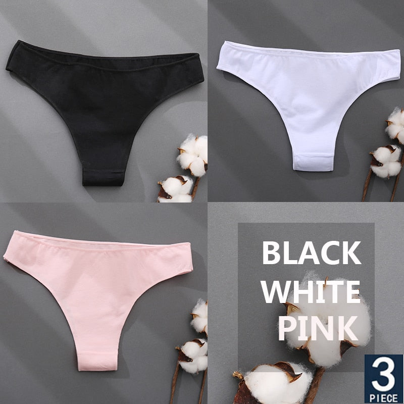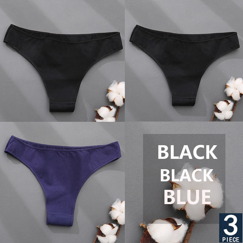 FINETOO 3PCS/Set Cotton Thong Women's Underwear M-XXL Woman Bikini Underpants Femme 7 Colors Breathable Girls Lingerie Panties