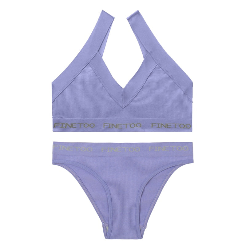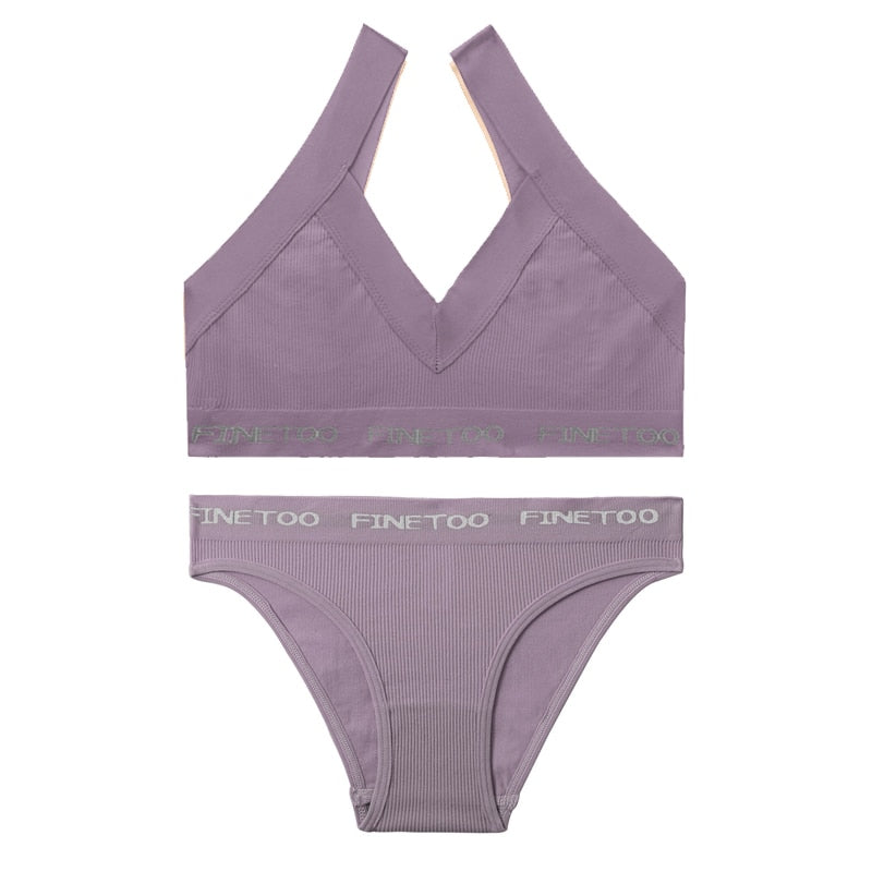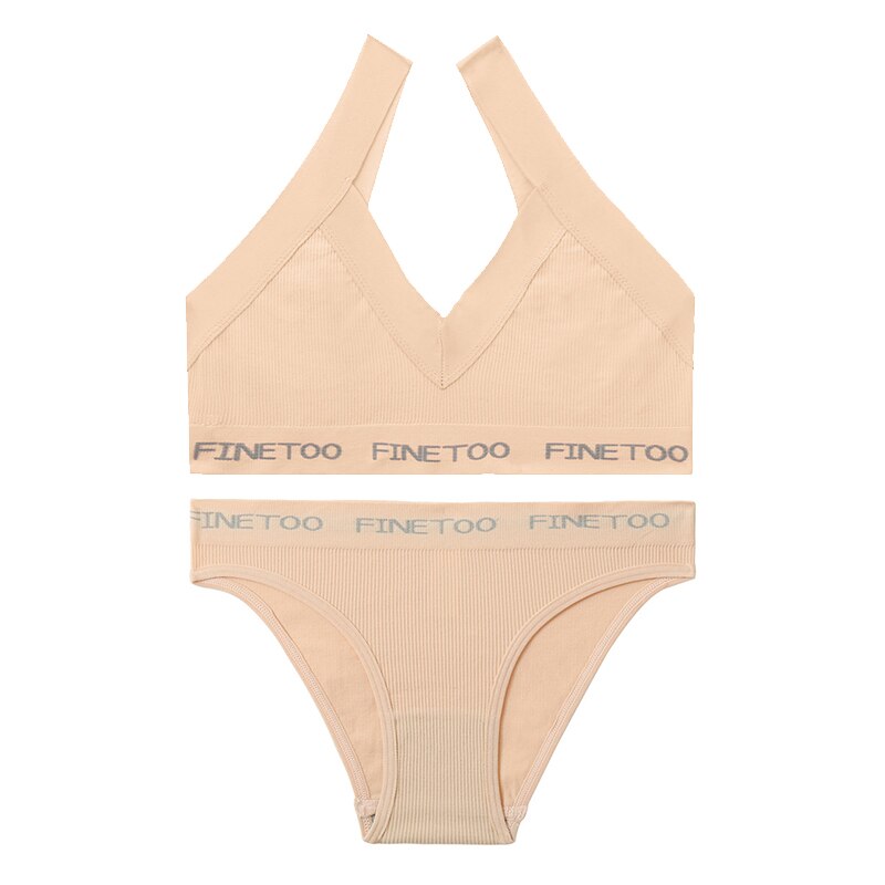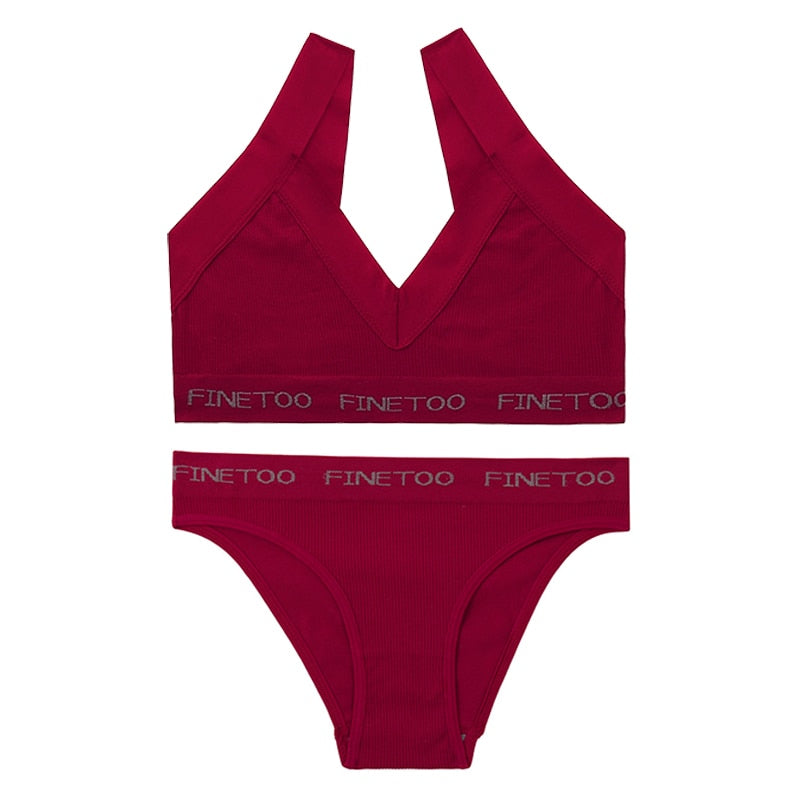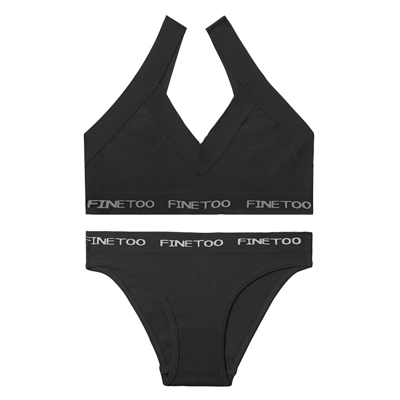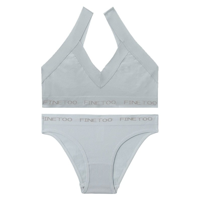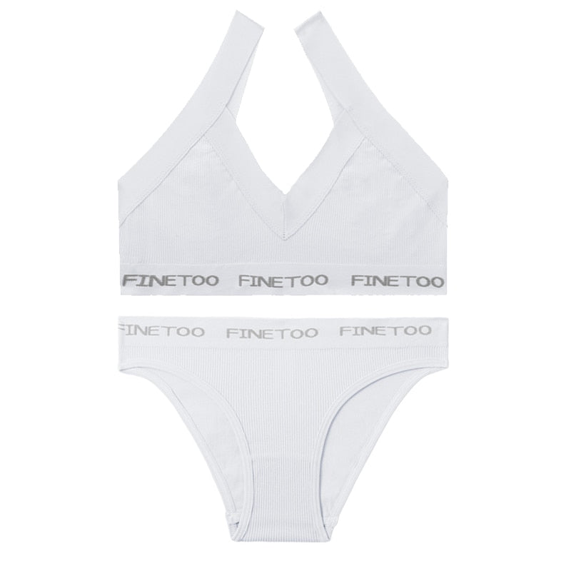 FINETOO Seamless Bra Set Women Deep V Tops Fashion Letter Panties M-XL Ladies Underwear Suit Tube Top Female Briefs Lingerie Set