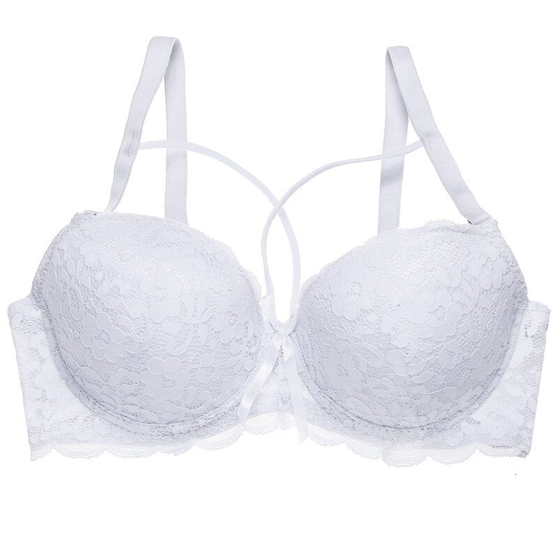 FINETOO Sexy Lace Bra Fashion Racerback Floral Bras For Women B C Cup Underwire Lingerie Bralette Female Bow Brallete Brassiere