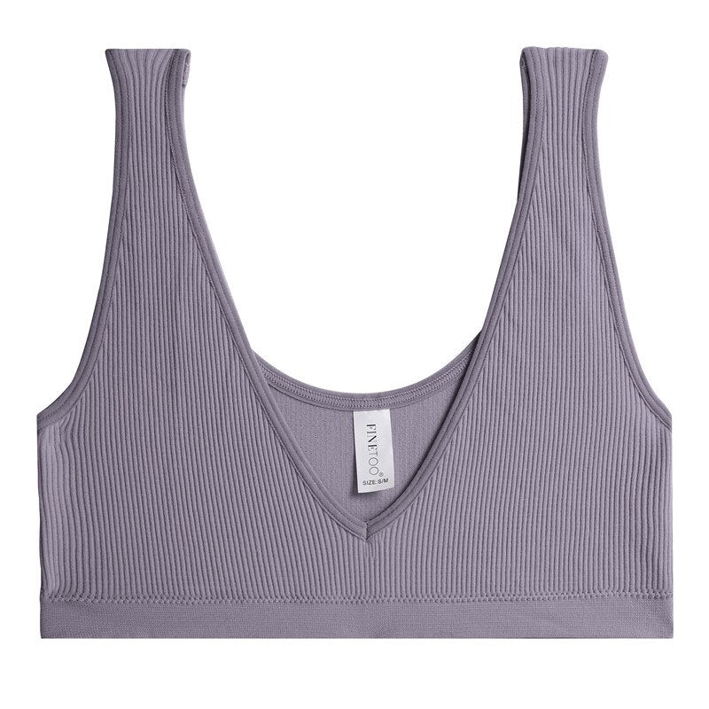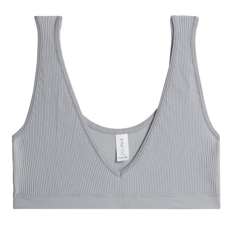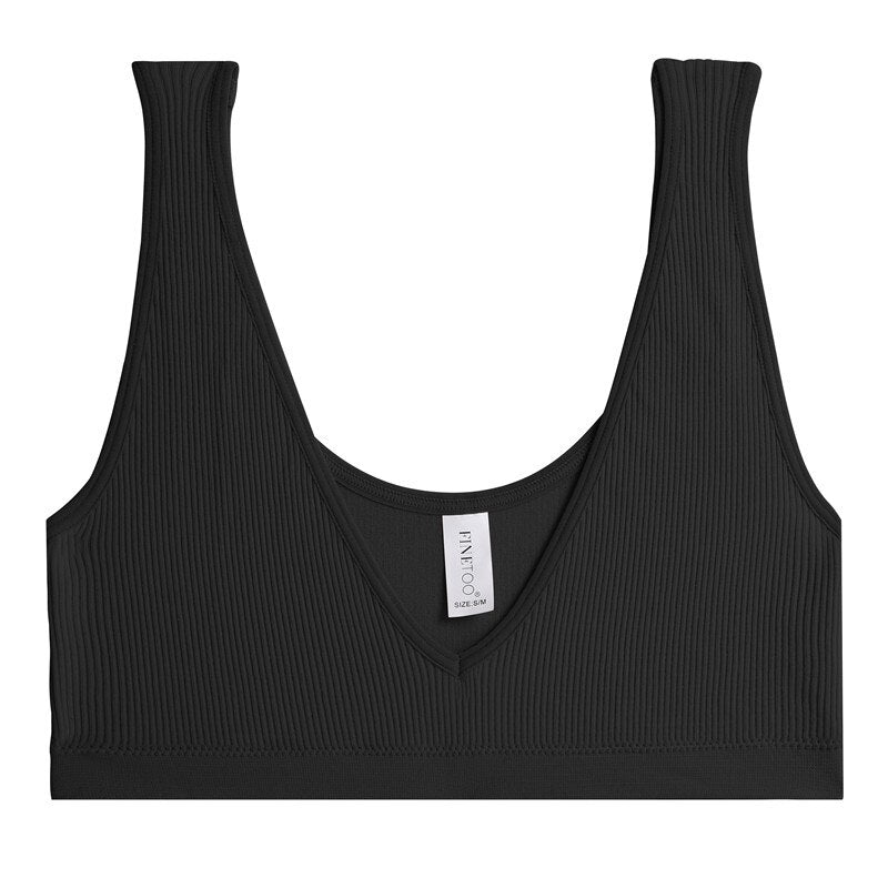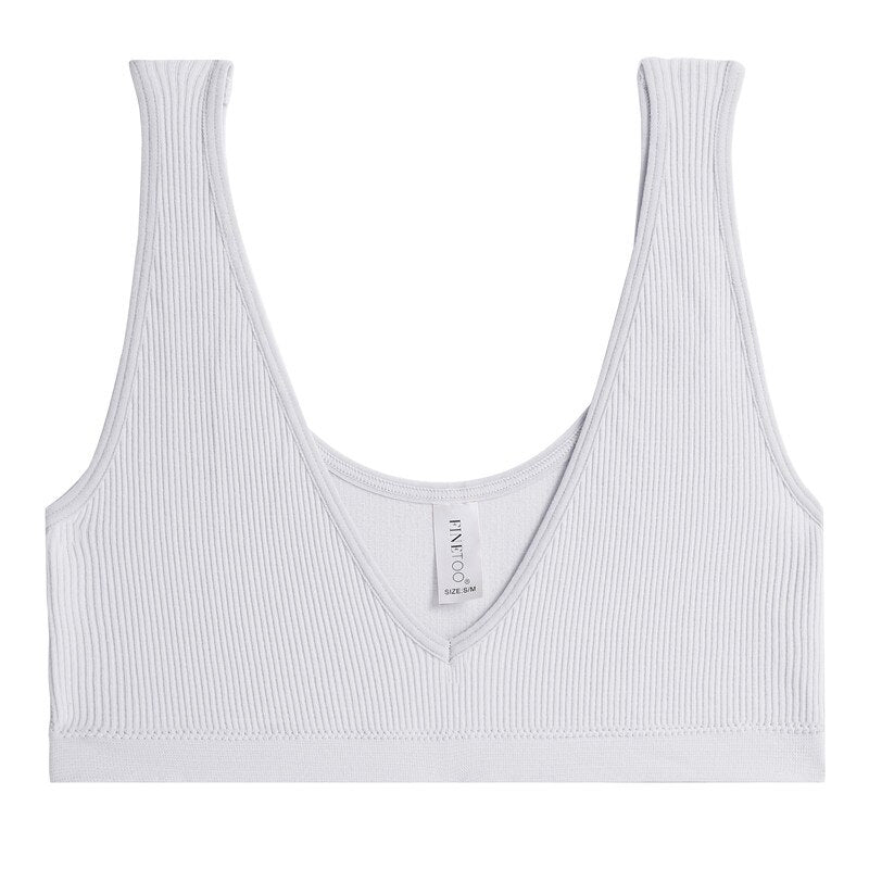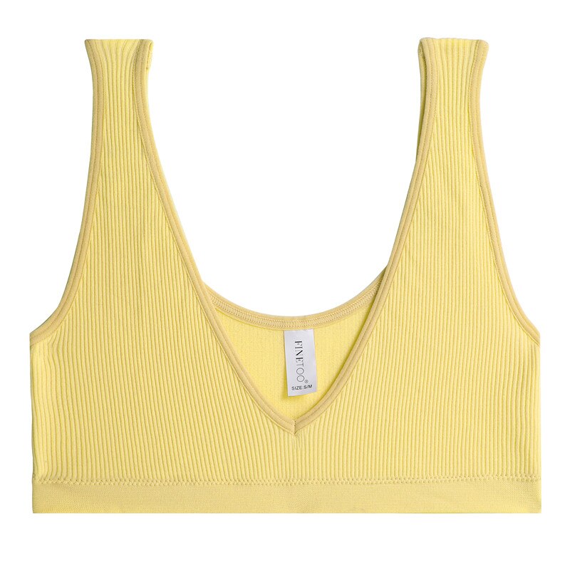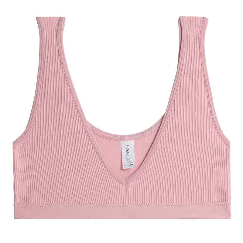 FINETOO Sexy V-Neck Women's Seamless Underwear Wide Strap Camisole Tops Tank Top For Girls Crop Push Up Femme Bralette Short Top
