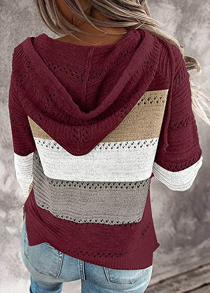 Fitshinling Bohemian Hooded Jumper Sweaters Pullovers Woman Clothes Patchwork Holiday Autumn Winter Pull Vintage Sweater Female