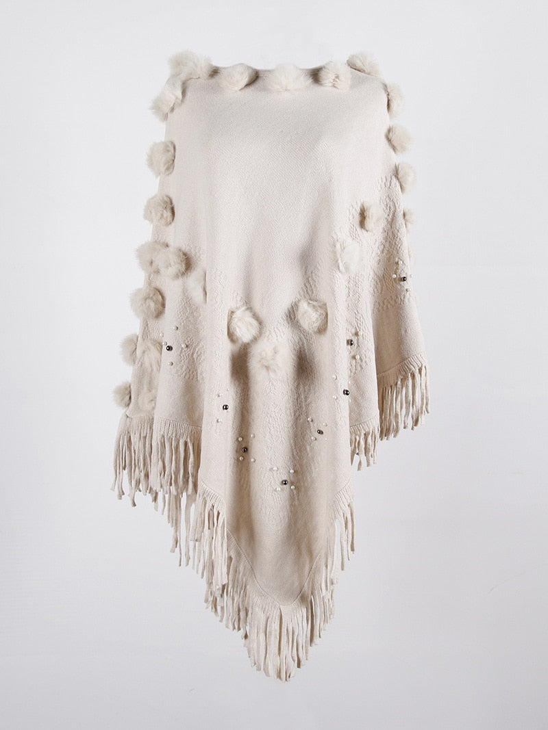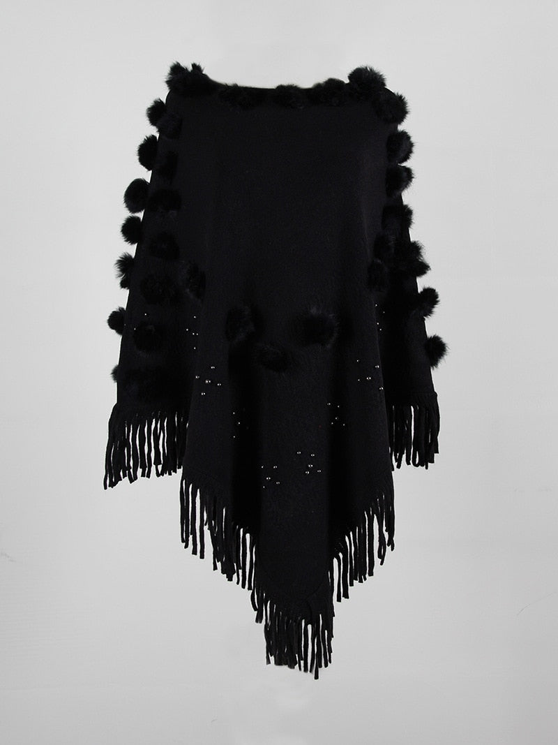 Fitshinling Fringe Hairball Bohemian Cloak Cape Oversized Sweater Female Knitwear Winter Clothing Irregular Poncho Women 2020