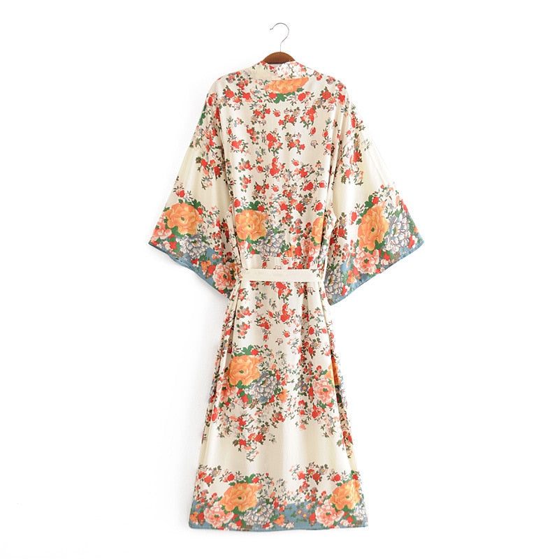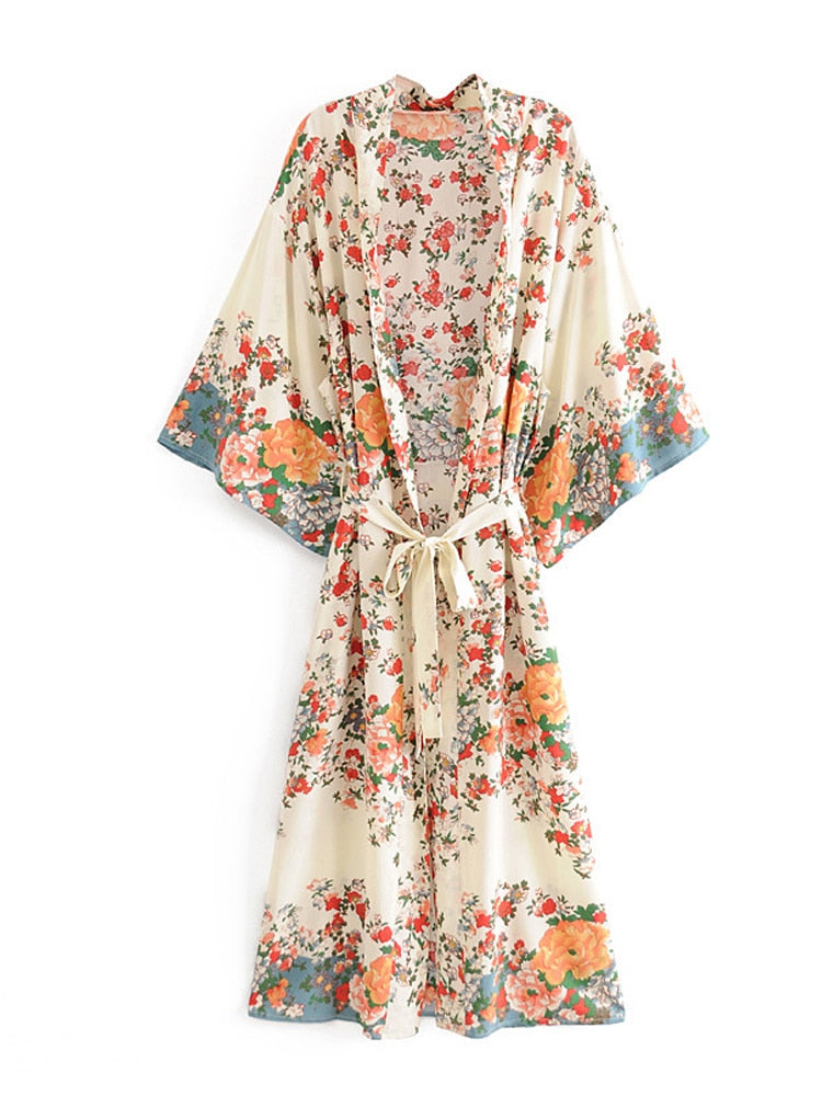 Fitshinling New Arrival Kimono Beach Wear Cover Up Fashion Slim Print Floral Boho Long Cardigan Holiday Vintage Sexy Coat Sale
