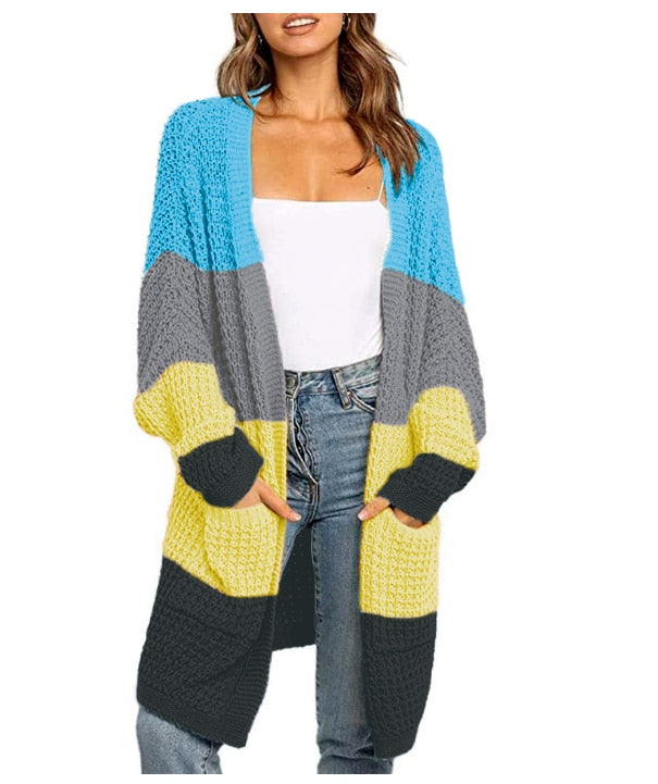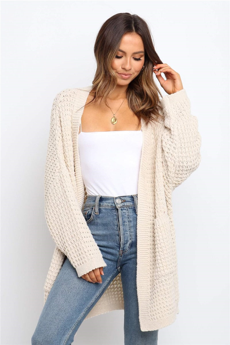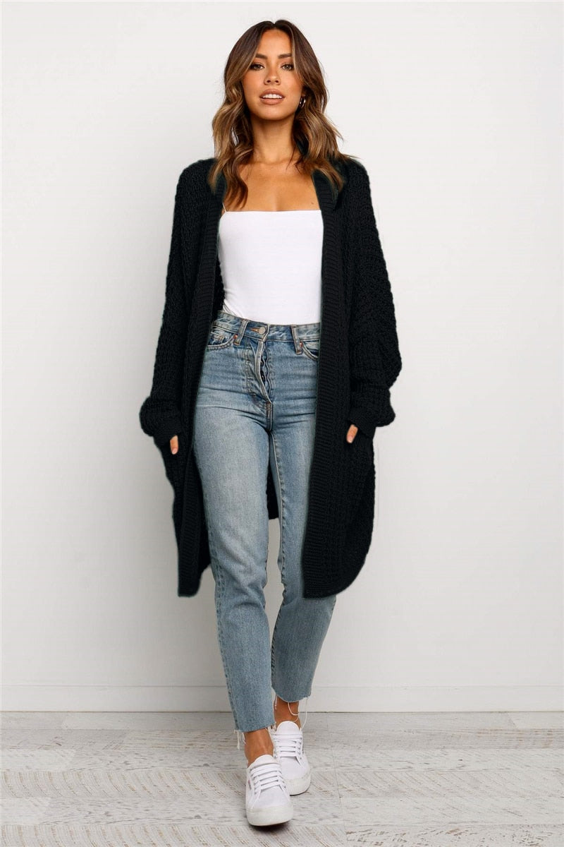 Fitshinling Oversize Knitted Long Cardigan For Women Pockets Slim Solid Winter Coat Jacket Female Long Sleeve Sweaters Cardigans