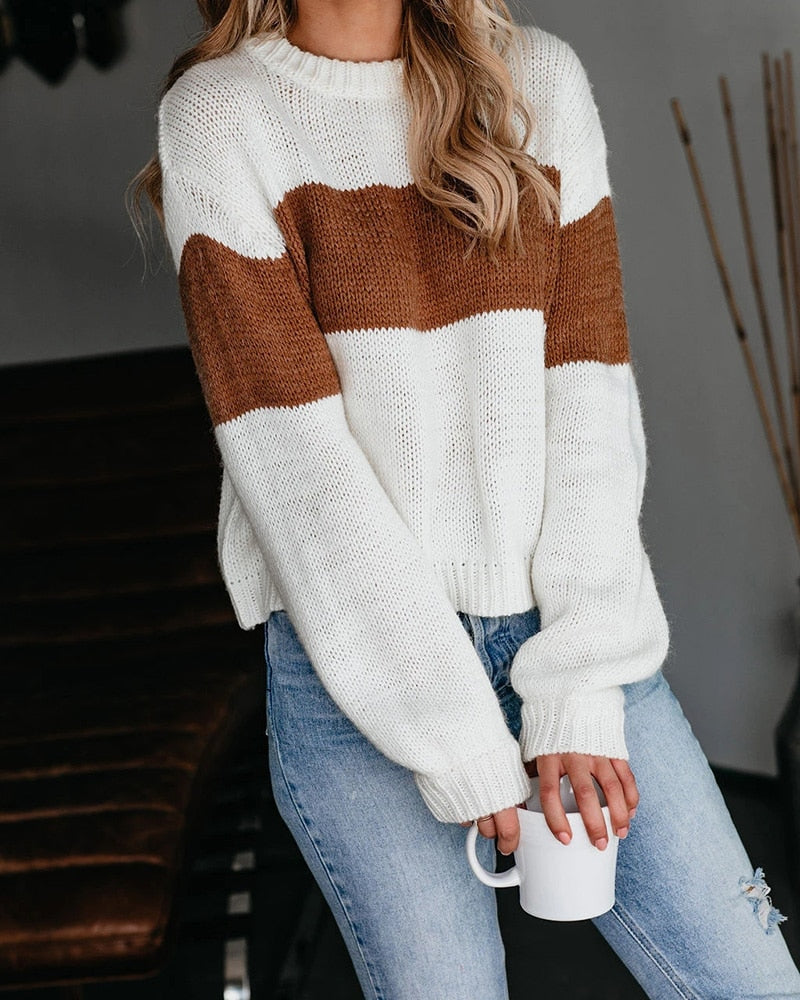 Fitshinling Patchwork Sweater Women Clothing Autumn Winter 2020 Boho Jumper Knitwear Long Sleeve Tops Holiday Pullover Female