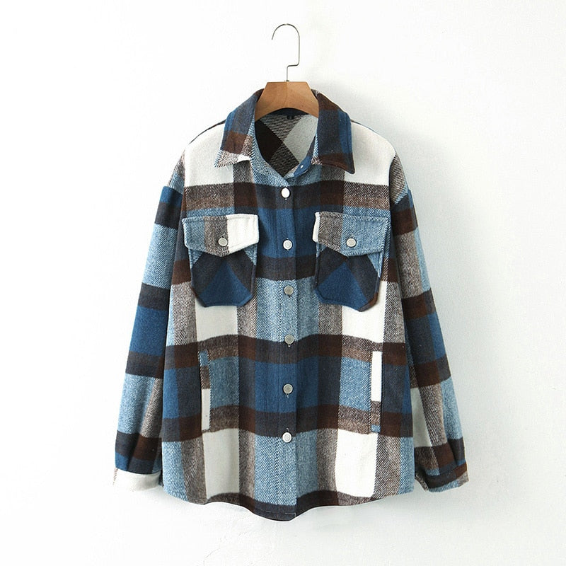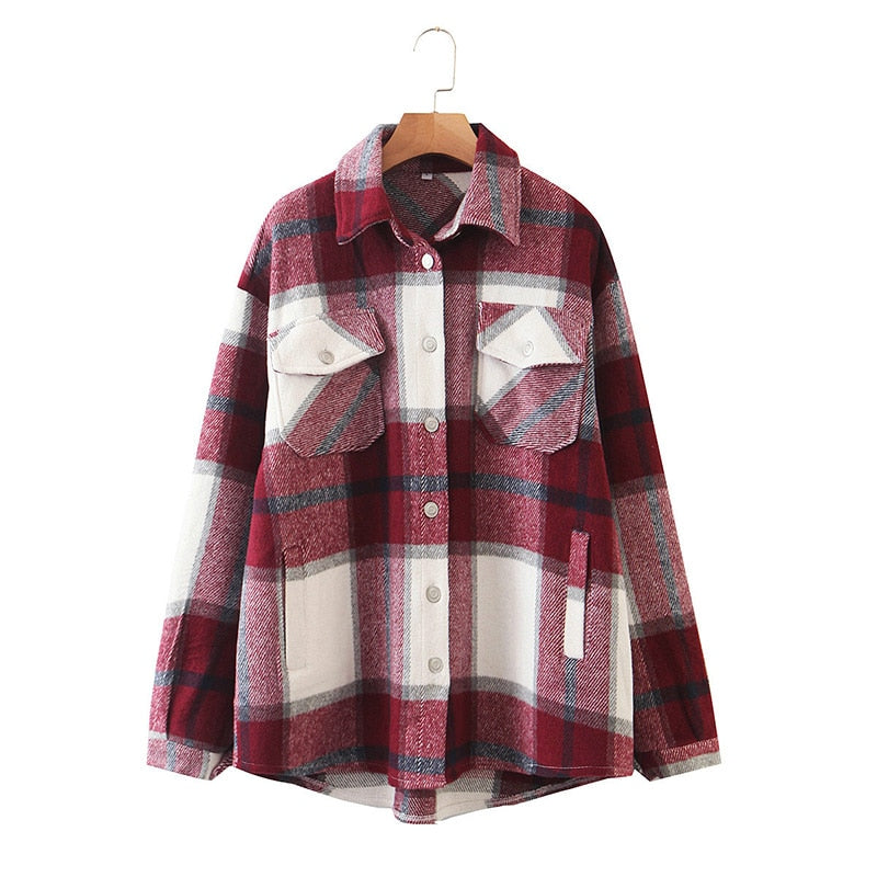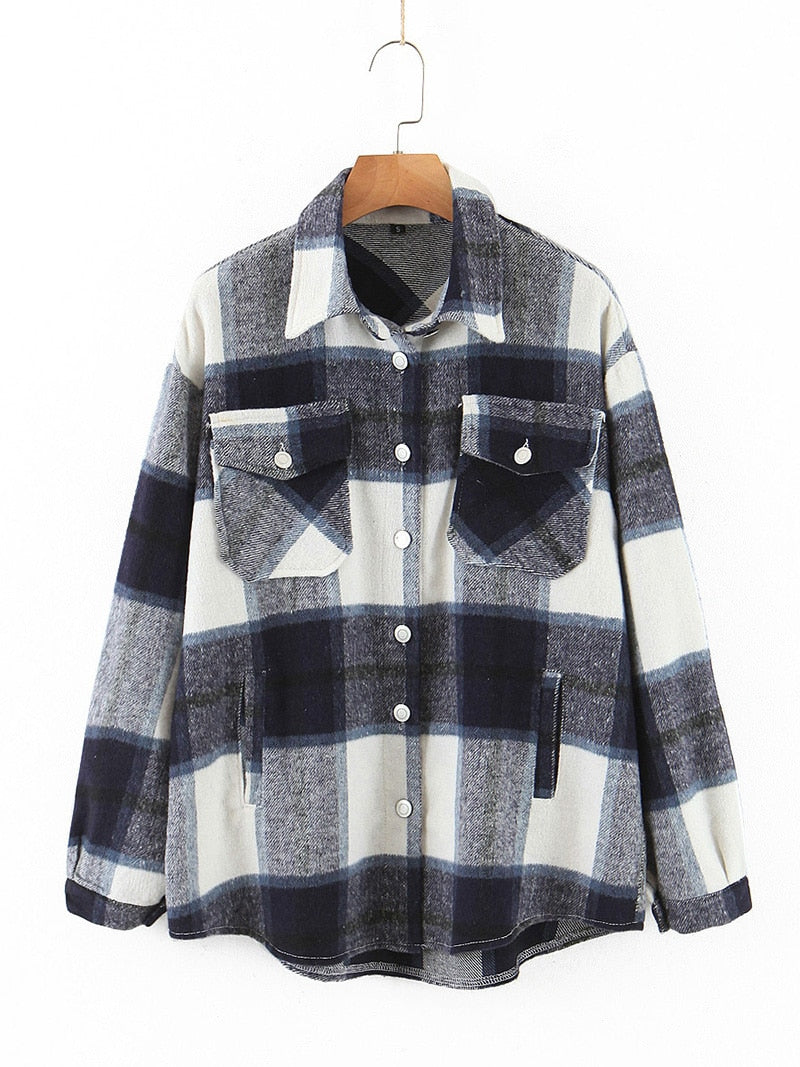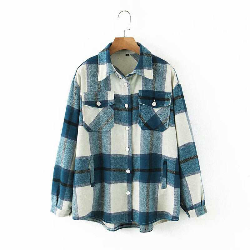 Fitshinling Vintage Checker Blouse Shirt Women Pockets Long Sleeve Tops 2021 High Quality Plaid Oversized BF Shirts Female Sale