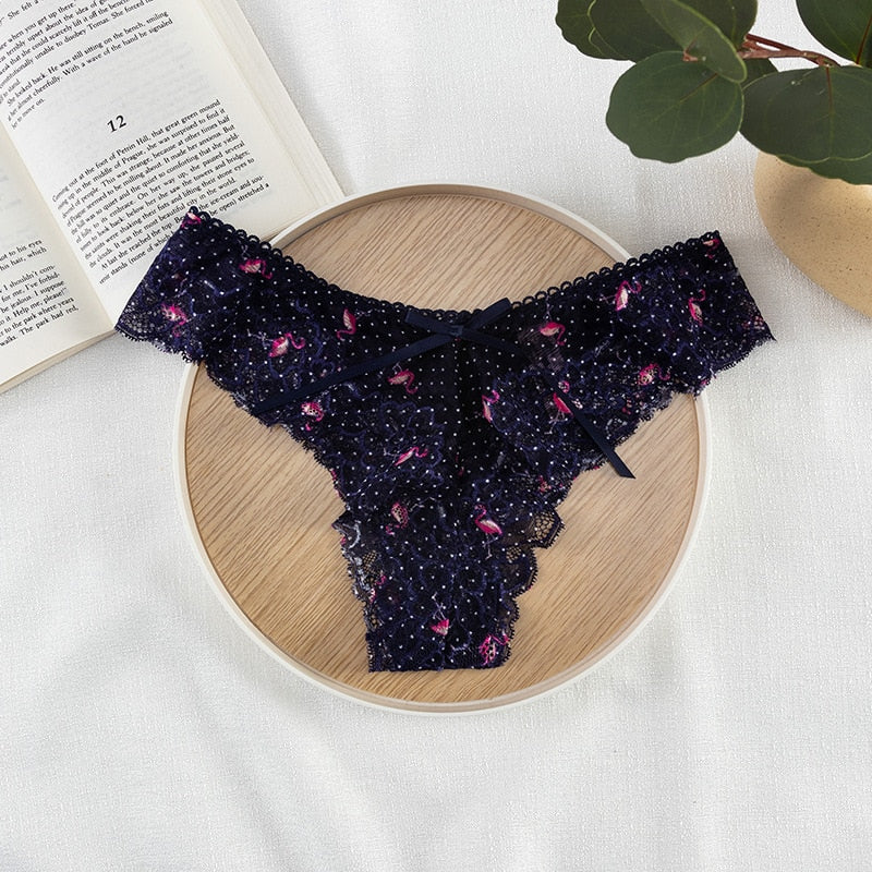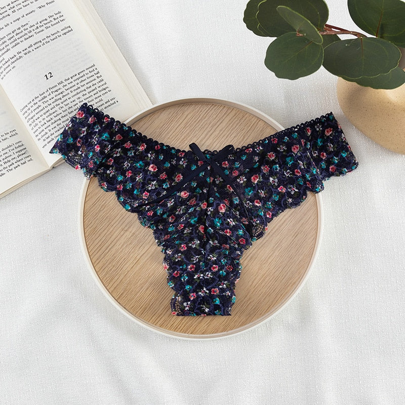 French Style Sexy Thong Fashion Hollow Out Ribbon T-Back Sexy Lace Panties Low Waist Seamless Comfort Thong Female Lingerie