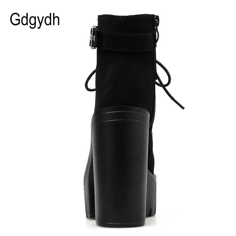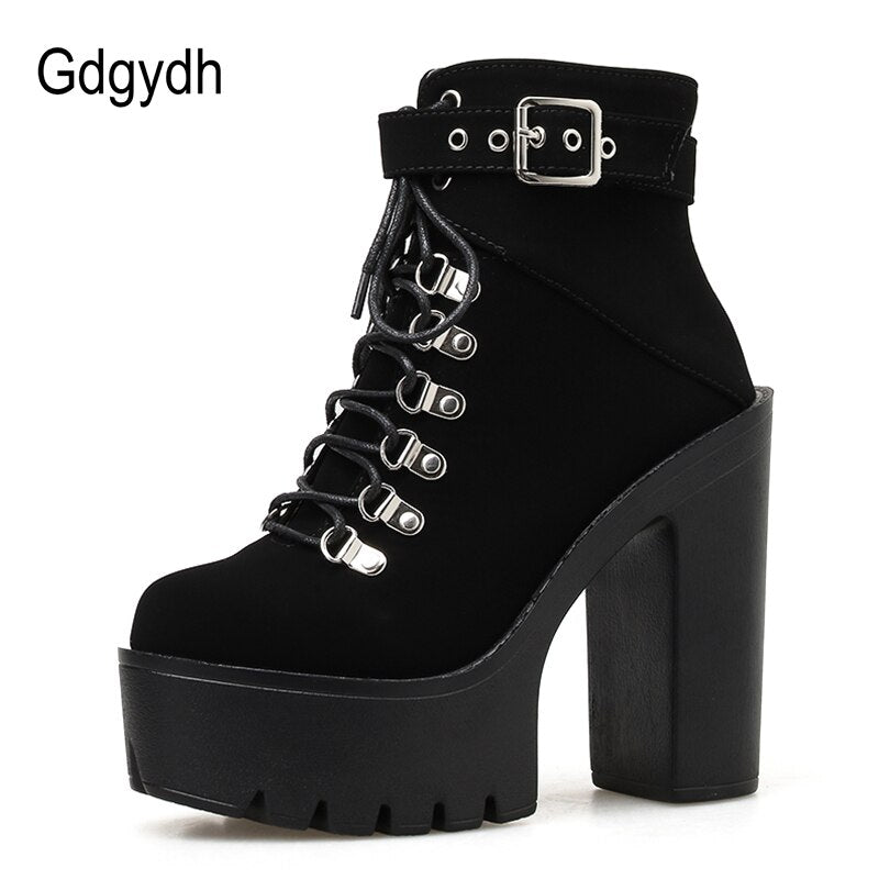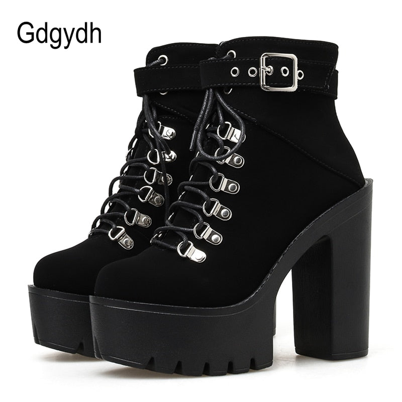 Gdgydh Lace Up Women Boots Platform Buckle Boot Winter Shoes Thick Heel Autmn Boots With Zipper Ankle Strap Black Suede Gothic