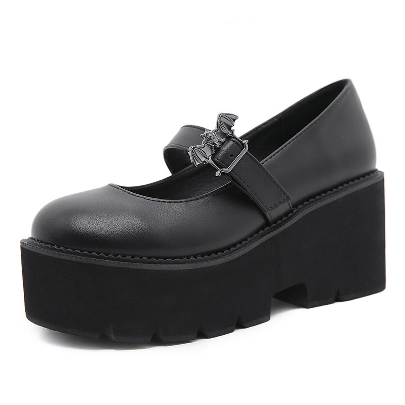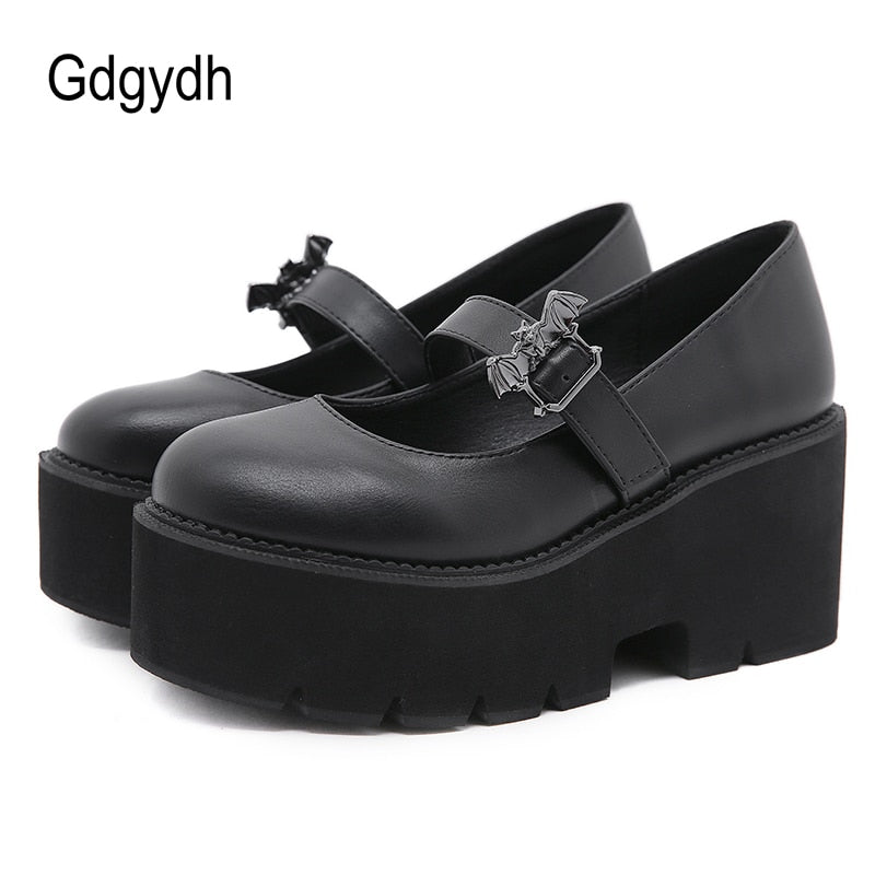 Gdgydh Vintage Lolita Bat Platform Mary Jane Shoes Women Block Heels Gothic Punk Style Black Women Pumps Plus Size 43 Drop Ship