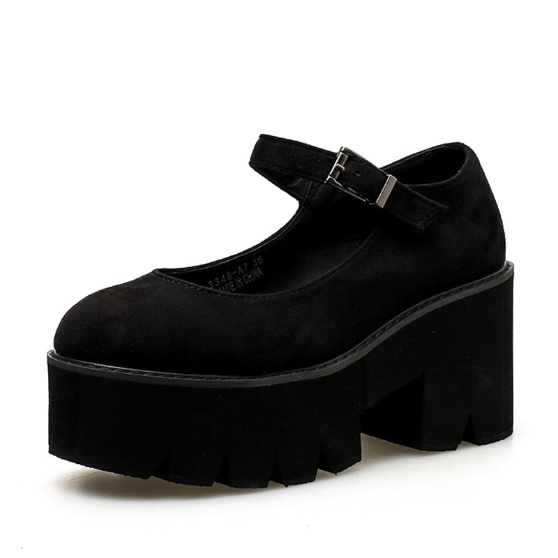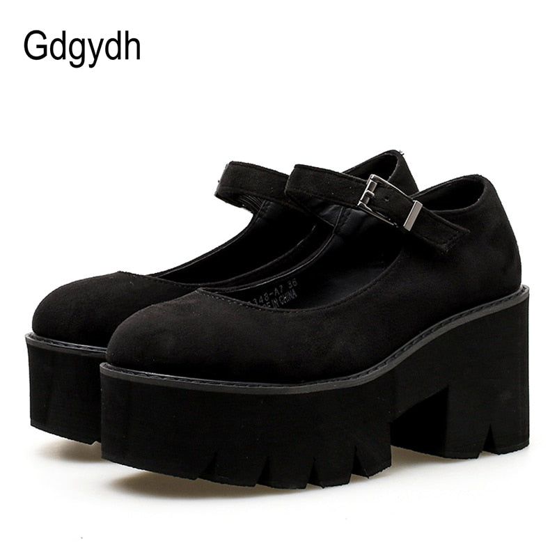 Gdgydh Women Pumps High Heel Platform Mary Jane Shoes Spring Fall Buckle Soft Leather Flock Comfort Student Shoes For Girls