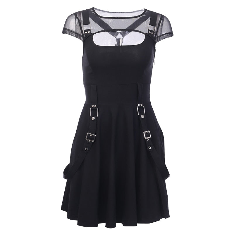 Gothic Sexy Dress Summer Dress Women Vintage Black Mesh Streetwear Hipster High Waist Solid Dresses Party Nightclub Mini Dress