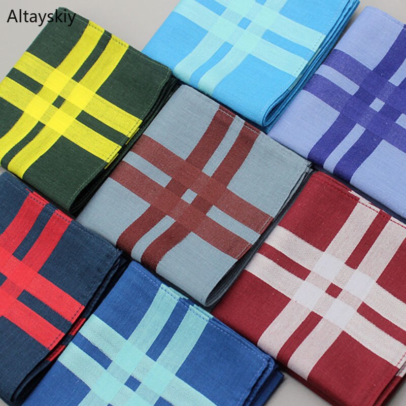 Handkerchiefs Women Cotton Plaid Retro High Quality Elegant Square Towel Pocket Womens Trendy Korean Style Ladies Simple Casual