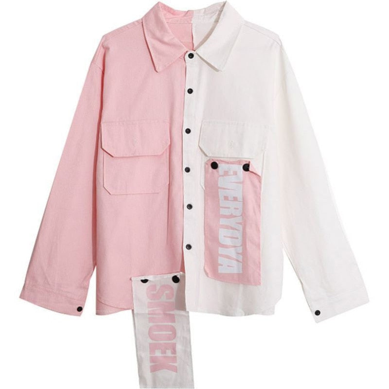 Harajuku Bomber Jacket Coats Women Loose Pocket Designer Cool Red Streetwear Hot Sale Kpop Yellow Spring shirt thin jeans jacket