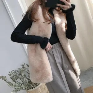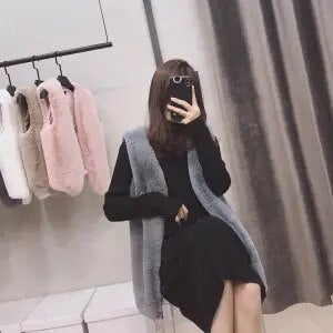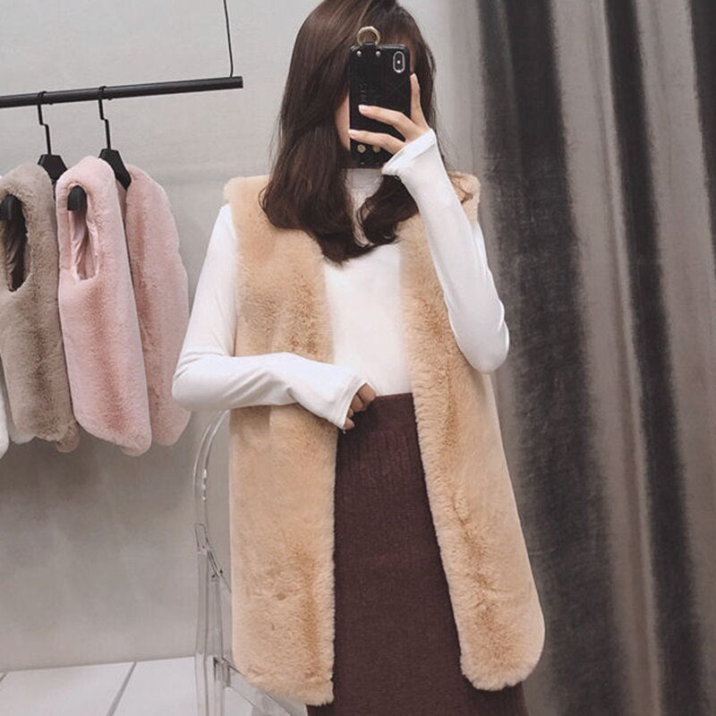 High Quality Faux Fur Vest Coat Women Autumn Winter Sleeveless V-Neck Soft Hairy Waistcoat Fur Jacket Outerwear Plus Size
