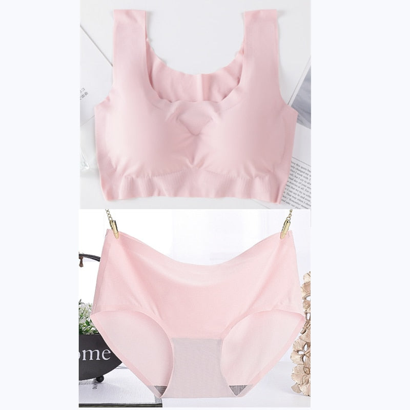 Ice Silk Bra Set Grils Croset Lingerie Panty Underwear Set Comfortable Sleep Women Thin Push Up Briefs нижнее белье женское