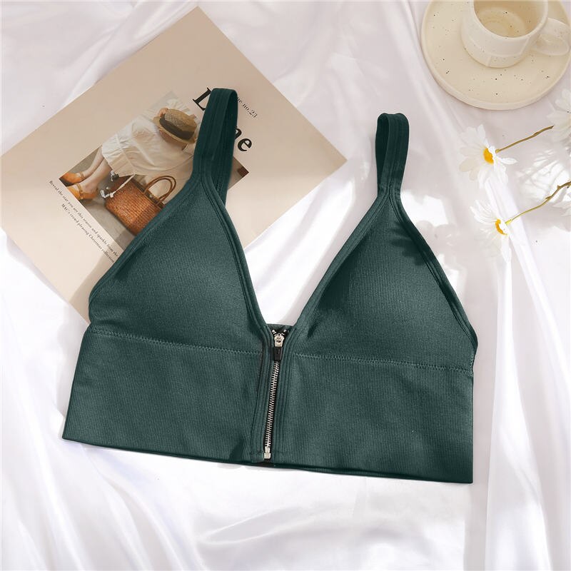 INS Fashion Zipper Bralette Women Sexy Brassiere Push Up Bras Solid Color Front Closure Bra Female Underwear Lingerie Tank Tops