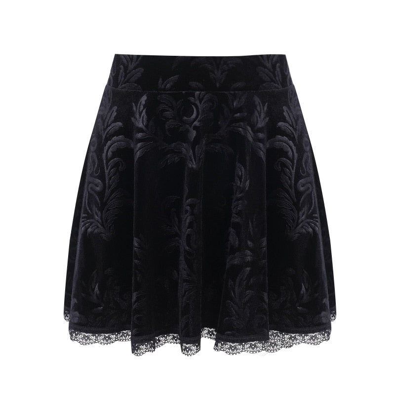 InsGoth Gothic Lace Trim Black Skirt Goth High Waist Mini Skirt Vintage Aesthetic A Line Women Skirts Grunge Darkness Outfits