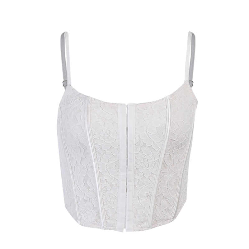 InsGoth Lace Spaghetti Straps Camis Y2K 90s E Girl Bodycon White Camisole Goth Harajuku Aesthetic Sexy Backless Cropped Tops