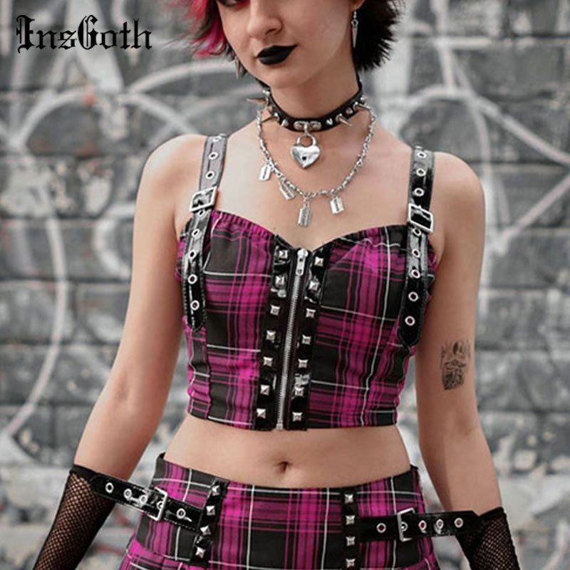 InsGoth Punk Grunge Sexy Purple Crop Top Goth Harajuku Backless Rivet Patchwork Camisole Streetwear Bodycon Women Summer Camis