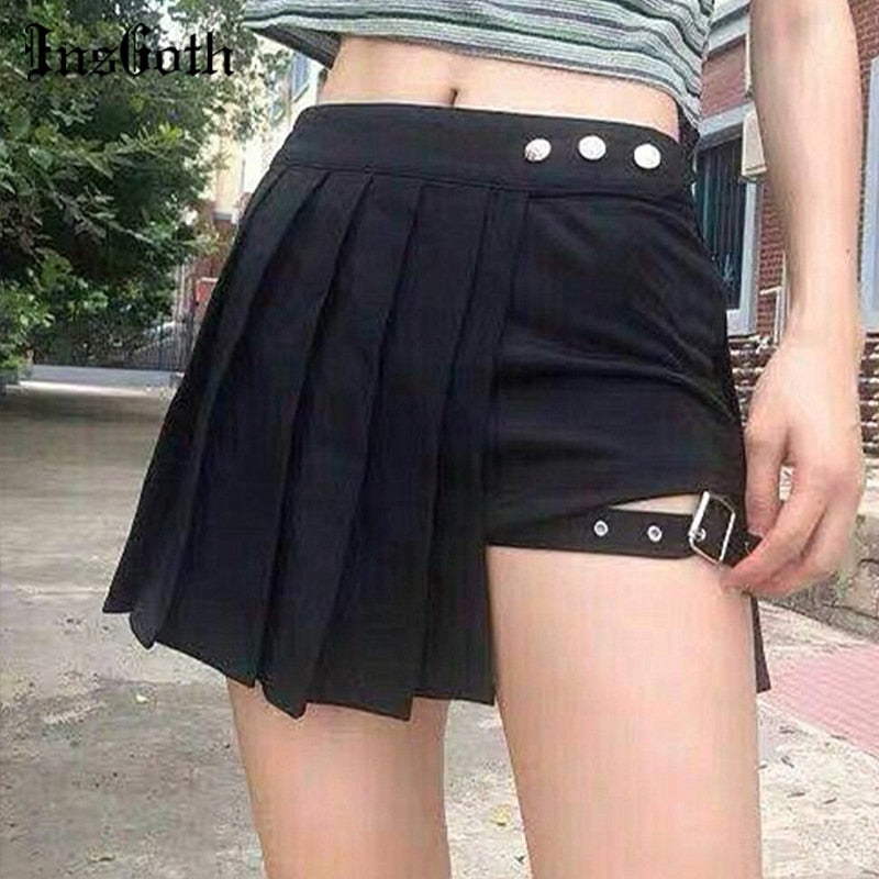 InsGoth Punk Harajuku Women Black Cargo Skirt Fashion Streetwear Women Grunge A-line Mini High Waist Skirts