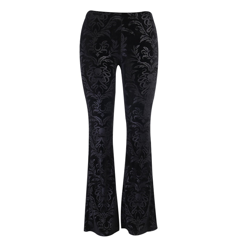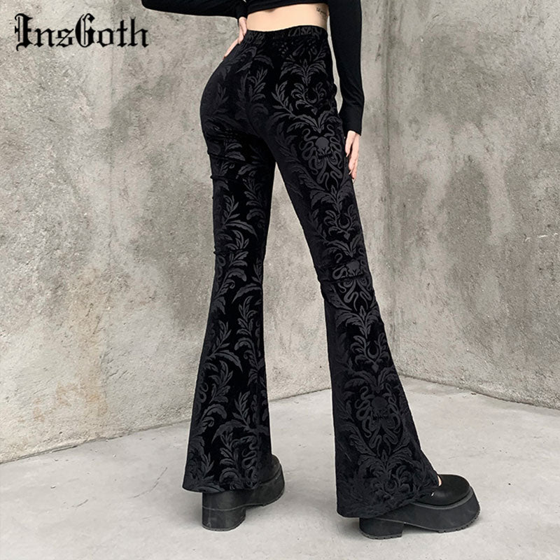 InsGoth Retro Gothic Print Black Pants Goth Harajuku High Waist Flared Pants Women High Street Punk High Waist Women Trousers