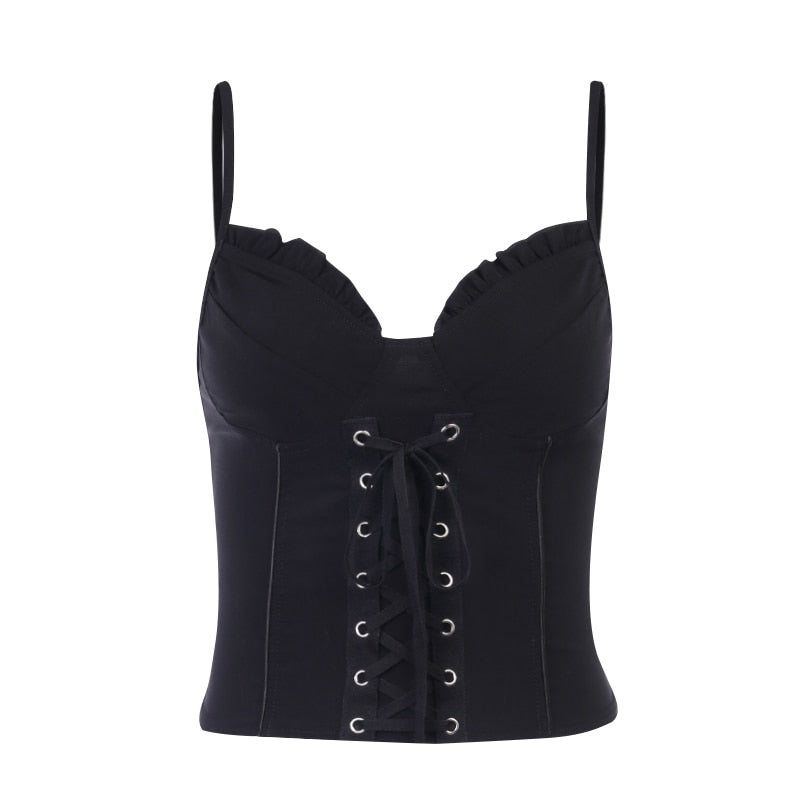 InsGoth Sexy Bandage Camis Women Gothic Black Spaghetti Strap Backless Bodycon Crop Tank Tops Female Vintage Camisoles Summer