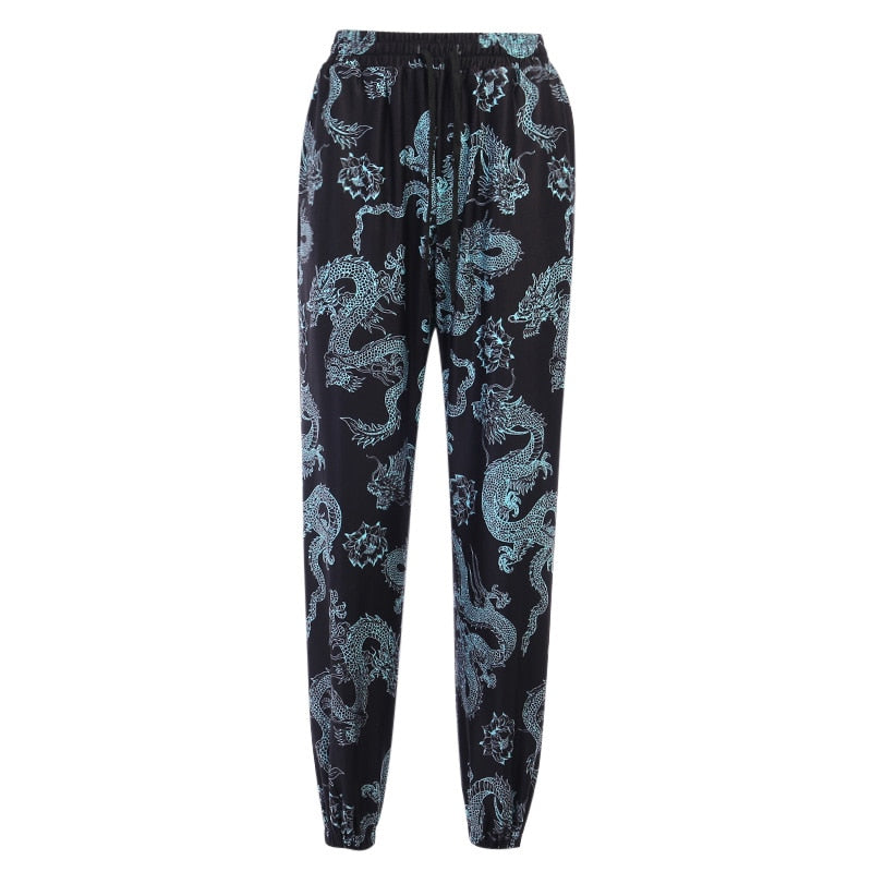 InsGoth Women Streetwear Pants Harajuku Gothic Vintage Black Harm Pant Dragon Print High Waist Casual Loose Long Trousers Female