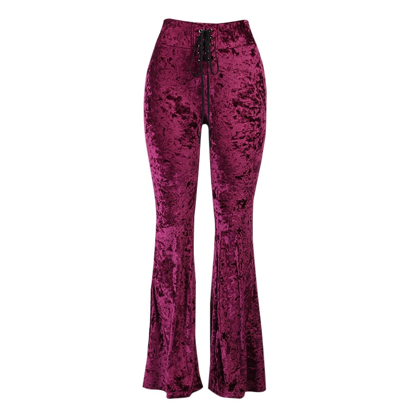 InsGoth Y2K Goth Black Flare Pants Harajuku High Waist Bandage Pants Vintage Aesthetic Velvet Women Trousers Streetwear Pants