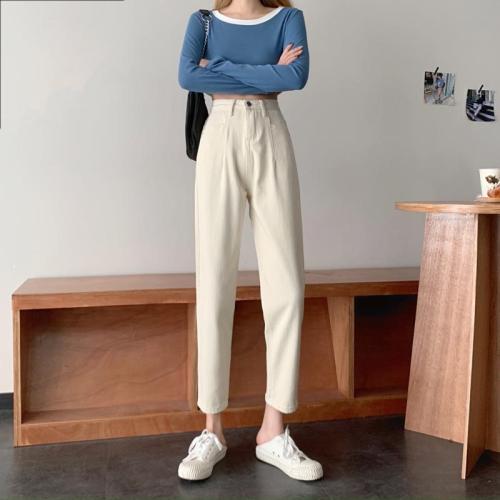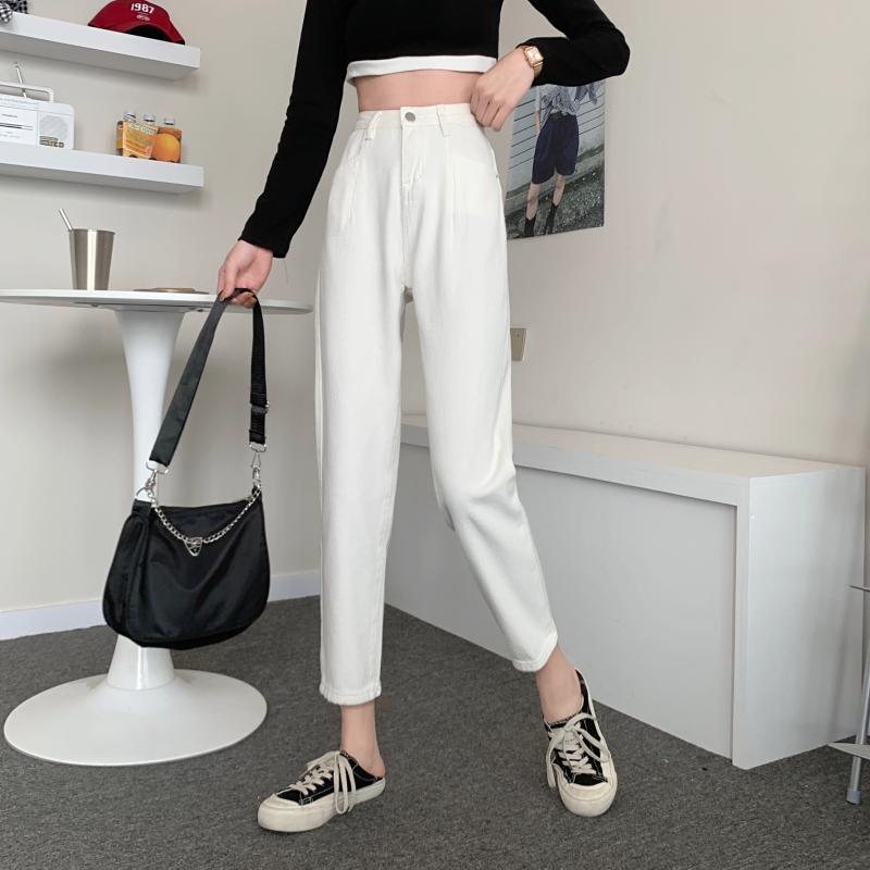 Jeans Women High Street Female Korean Style Pure Color Vaqueros Mujer Ankle-length Zipper Fly Students Harajuku Straight Daily