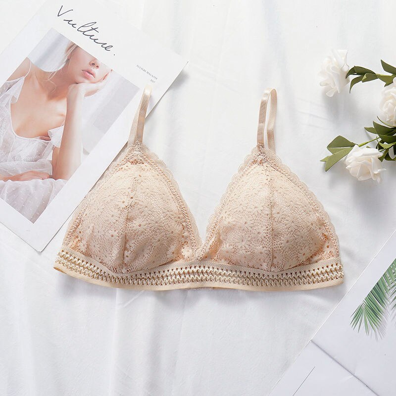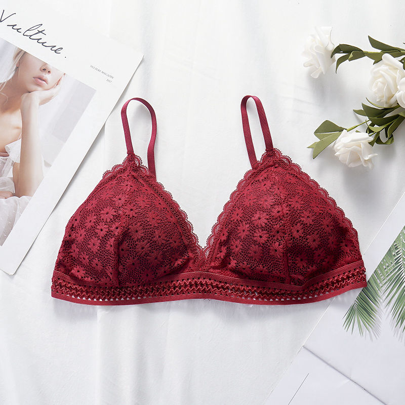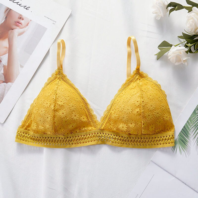 Lace bra, women's panties, triangle cut, lingerie, V-shaped wireless underwear, soft and thin seamless 1/2 piece bra, 2021