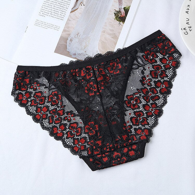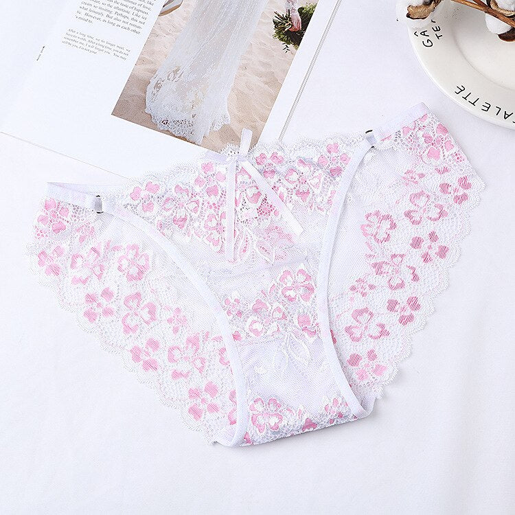 Ladies sexy lace panties, low-waist panties, floral embroidered panties, transparent T-back, thongs, lingerie underwear 2021 new